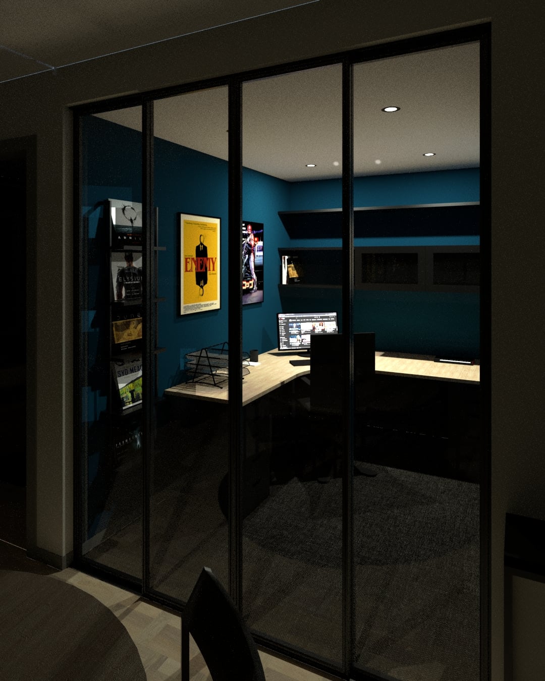 I don’t know how useful this kinda office would be BUT as a photograph/image, this composition reminds me of Edward Hopper! The lights, the closed doors, dark furniture and everything! If this was in my house, I would stare at it