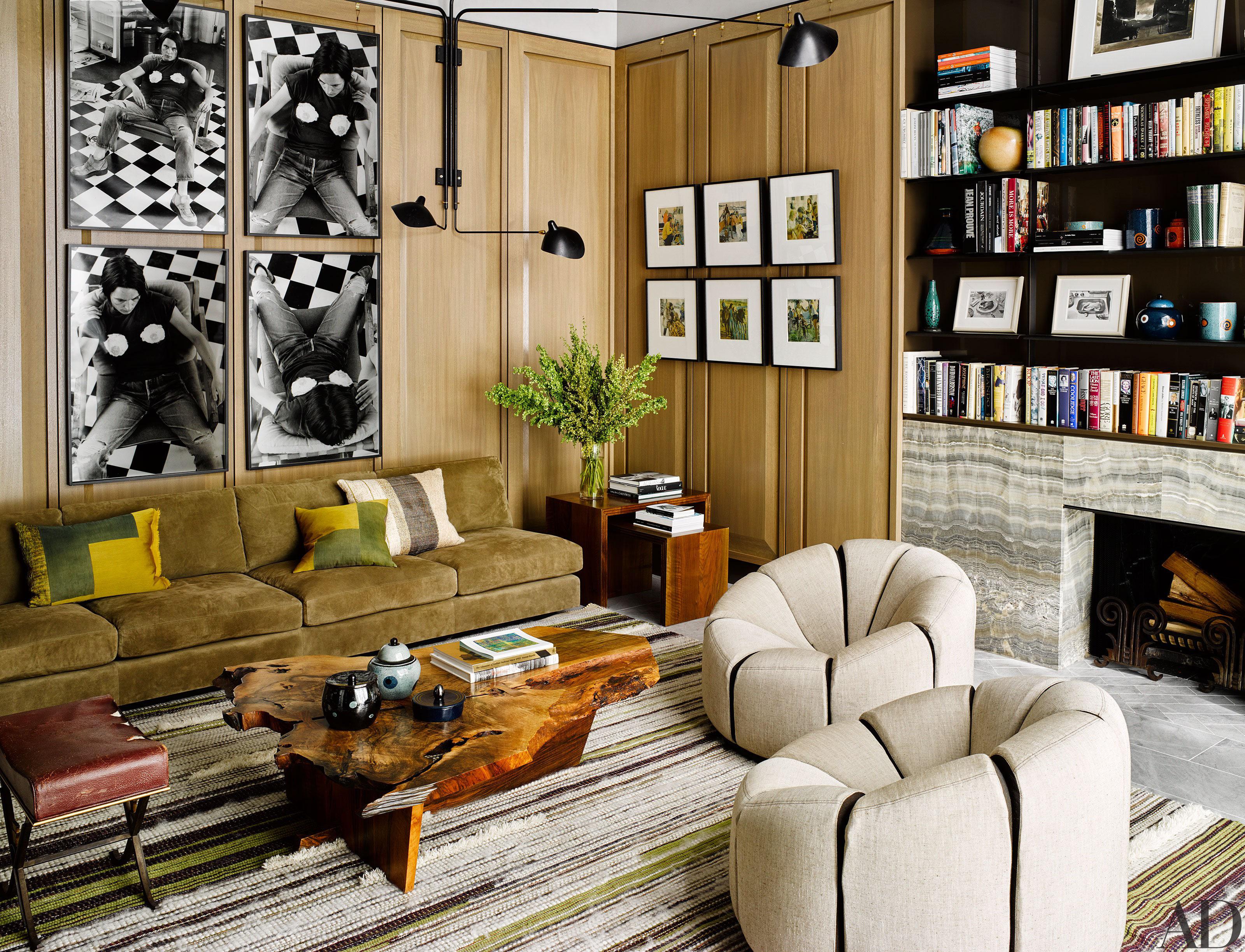 I like the built-in shelves and wall paneling. Everything else is awful, or awful in combination.