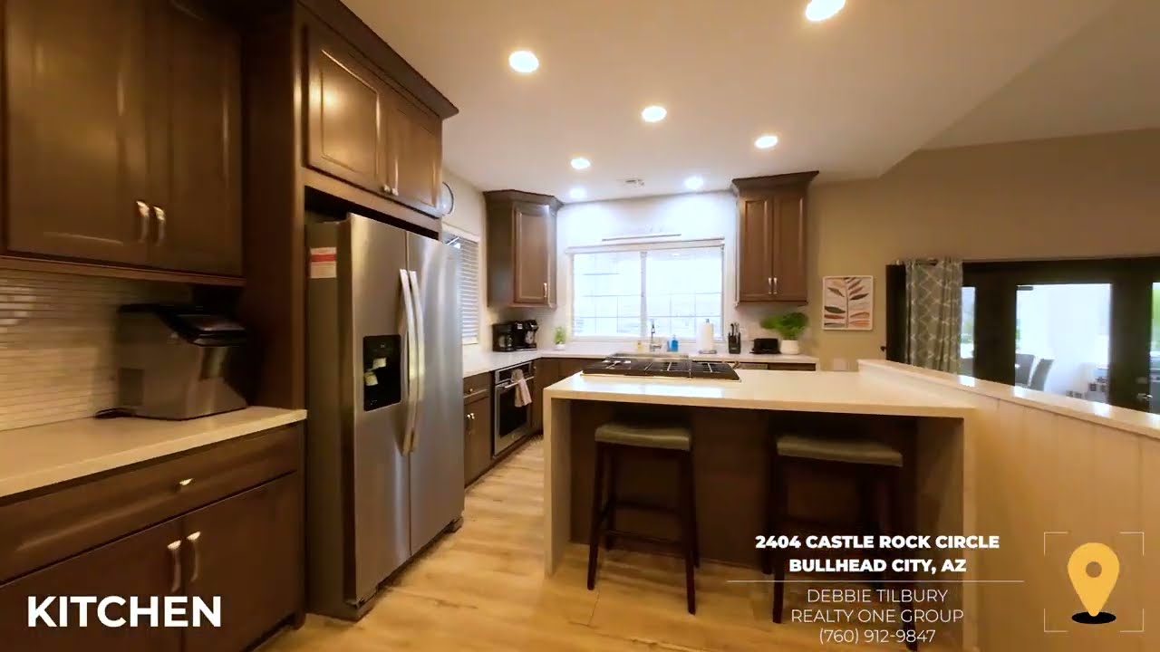 ***Exclusive Luxury Waterfront Living at 2404 Castle Rock Circle!***This 4-bed, 4-bath property surpasses all expectations to create a residence like no other whether its your forever, vacation or income producing home. Beautifully positioned on the Mighty Colorado River this Mediterranean-inspired home, renovated from its original interior design, boasts pristine luxury vinyl plank flooring, timeless shaker-style cabinetry, and brushed nickel appliances, all bathed in a soothing color palette that harmonizes with the abundant natural light throughout. The welcoming foyer, adorned with an ornate bronze and iron French scroll chandelier, leads to the heart of the home a spacious open-plan living area centered around an elegant fireplace. Stretch out, relax, and unwind in this inviting lounge while the gourmet kitchen with modern appliances, brushed stainless-steel apron farmhouse sink, and stunning quartz countertops beckons home cooks. Step outside to discover the epitome of outdoor living with two balconies and a split-level patio that reaches the water’s edge. Customizable to your desires, these spaces offer unbeatable open-air living with breathtaking river views. Enjoy a two bar-height Weston 6-Person Round Dining Sets with fire pit, ideal for hosting unforgettable gatherings with family and friends. The lower patio’s corner spa sets the stage for intimate evenings of relaxation. Boating enthusiasts will appreciate the private pontoon dock and jet ski garage with a lift, offering convenient storage for watercraft. Generously sized bedrooms ensure restful nights, with the primary suite receiving the deluxe treatment complete with a corner fireplace, private balcony, and 5-star resort-style ensuite featuring a spacious walk-in shower and freestanding soaking tub. Additional highlights include a versatile downstairs bunkbed bedroom, perfect as an additional lounge or peaceful home office, and a bottom-level bathroom. The oversized 3-car garage game room provides secure parking and extra storage space, while the driveway offers off-street parking.This exceptional property has an array of nearby adventures including Laughlin Casinos, Golf Courses, Oatman, and off-road destinations for side by sides. Make this extraordinary residence your own and experience the pinnacle of elegance and comfort!