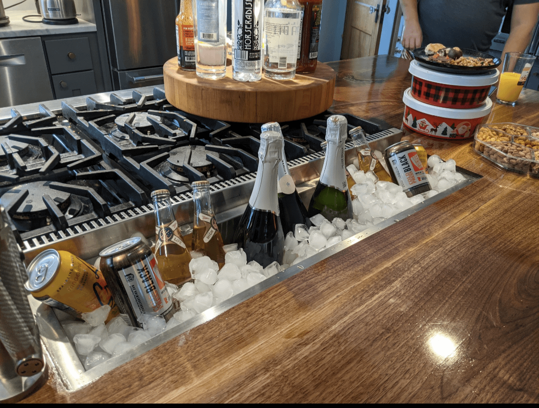 Champagne Trough in a Black Walnut Island in Minneapolis, MNby rachelgall kitchenKitchen Porn 11 Comments LaRubegoldberg 4 years ago A champagne trough! Now you’re speaking my language. Lovely! GmanWF 4 years ago Now all you have to get is a trough in the mens room and it’s a party InsertCoinForCredit 4 years ago Call me an uncultured commoner, but is it really a good idea to have a cold trough next to a hot cooktop like that? RealLADude 4 years ago I wish I’d thought of that. Vast_Ad9139 4 years ago I love the creative and clean old house renovations in Minneapolis. Can I come walk the neighborhood looking at your pretty houses too? Love it. powdawg57 4 years ago The heat from the range is going to melt your ice. Otherwise not bad. HeyNow-22 4 years ago Where is the oven in relation to the rest of what we can see in the kitchen? daniel_boring 4 years ago All these comments about the range being close to the trough are pedantic. This looks like a great party and hosting setup. Have fun!! [deleted] 4 years ago Beautiful kitchen, I especially love the island. hkh220 4 years ago Love it! Very cool! Felixir-the-Cat 4 years ago Love the tile on the island!Write A CommentYou must be logged in to post a comment.