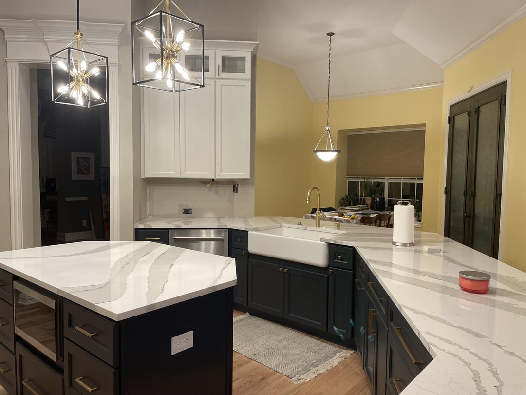 Almost done! Backsplash tomorrow and coffee area floating shelf. Also missing some back ordered handles. Then need to add the cabinet lighting. We are so close.