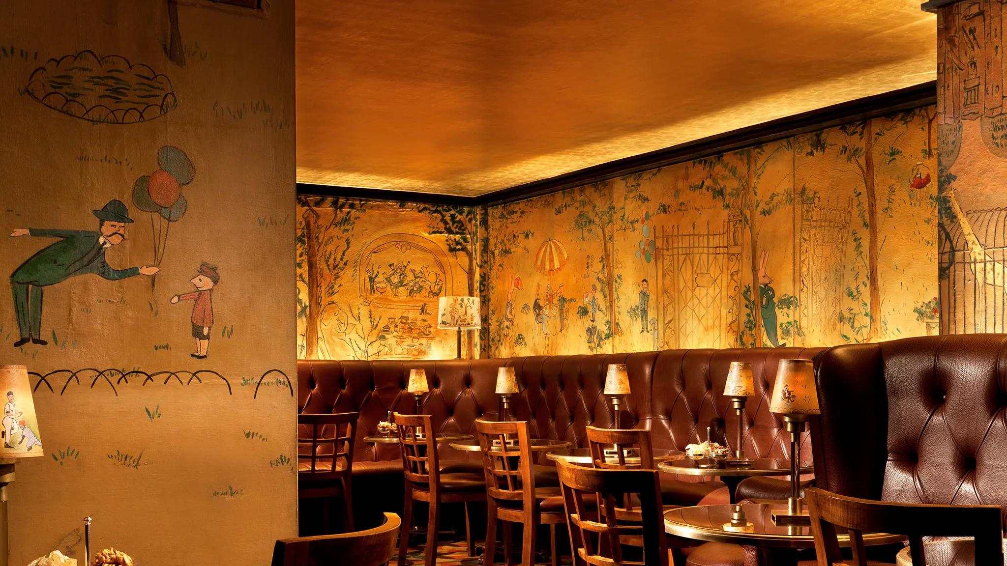 Bemelmans’ Bar, Manhattan, New York City. This bar’s walls were painted by Ludwig Bemelmans, author and illustrator of the Madeline children’s books in 1947. [2048×1152]