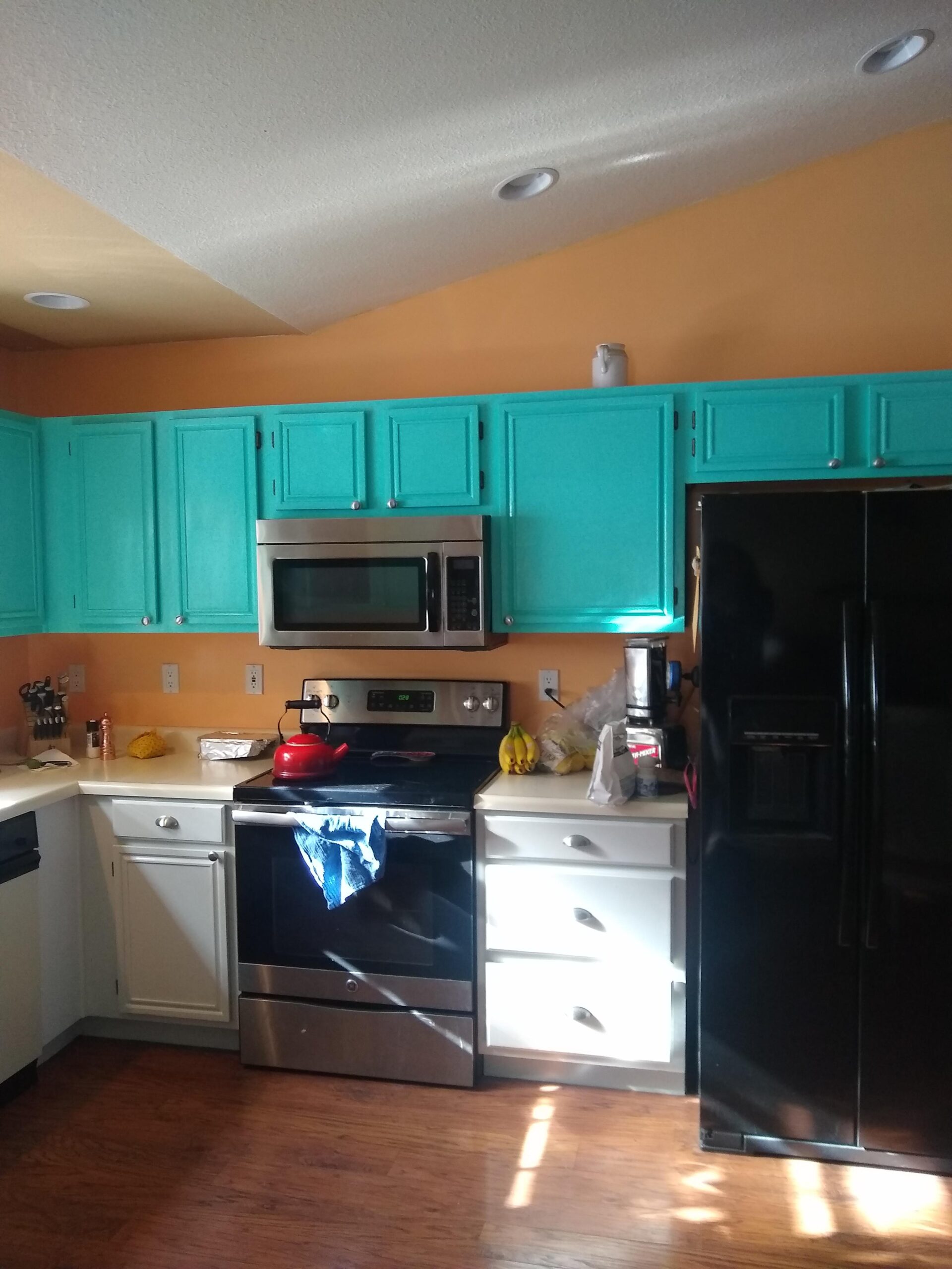 If the microwave doesn’t have that option or you simply want a different hood vent, the plan is virtually the same if you keep the cabinet.