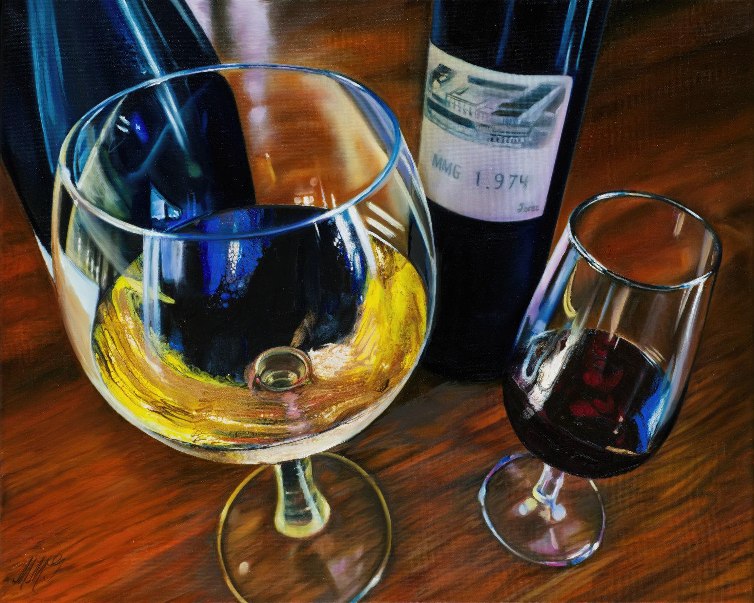 Entre Amigos 1| Original Mixed Media Painting Size: 20 x 16 IN (50.8 x 40.64 CM) The wine is done in acrylic pouring and the rest is done in traditional oils. Love painting about wine 🍷 😍