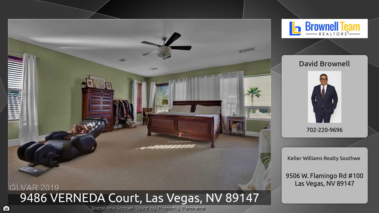 The Virtual Tour for the property at 9486 VERNEDA Court, Las Vegas, NV 89147 listed for $675,000: Other homes for sale by David Brownell of Keller Williams Realty Southwe: Stunning home in pristine gated community. The functional layout includes a grand living and dining space with French doors that lead out to an inviting covered patio. The heart of this residence lives outdoors where an entertainment oasis can be enjoyed year-round. The amazing backyard takes full advantage of the lot with pool&spa,firepit,covered patio, & built in BBQ w/ Pizza oven! All bedrooms on 2nd floor and oversized. …