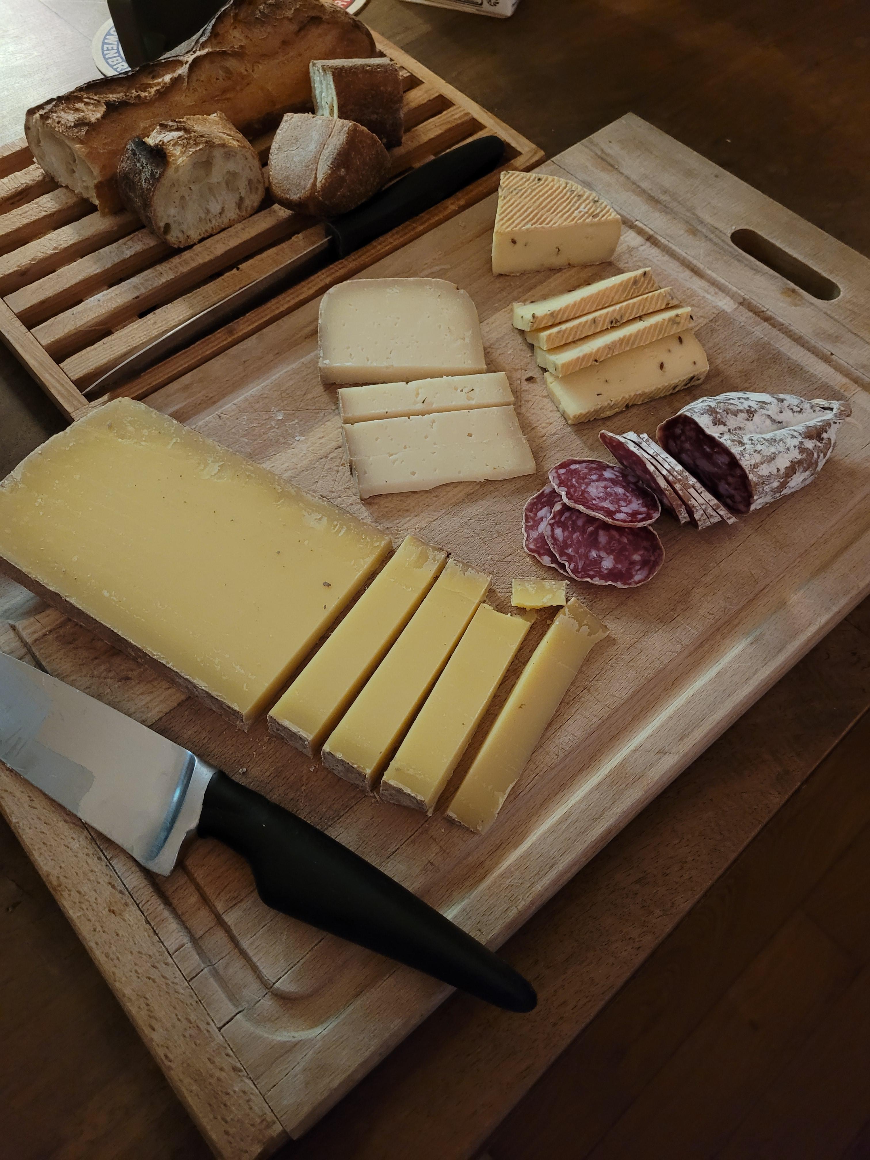 astuce : le comté coupé extra fin avec un épluche légume (les droit « moderne » pas les anciens en forme de couteau), c’est encore plus délicieux. Un peu comme la tête de moine mais en comté