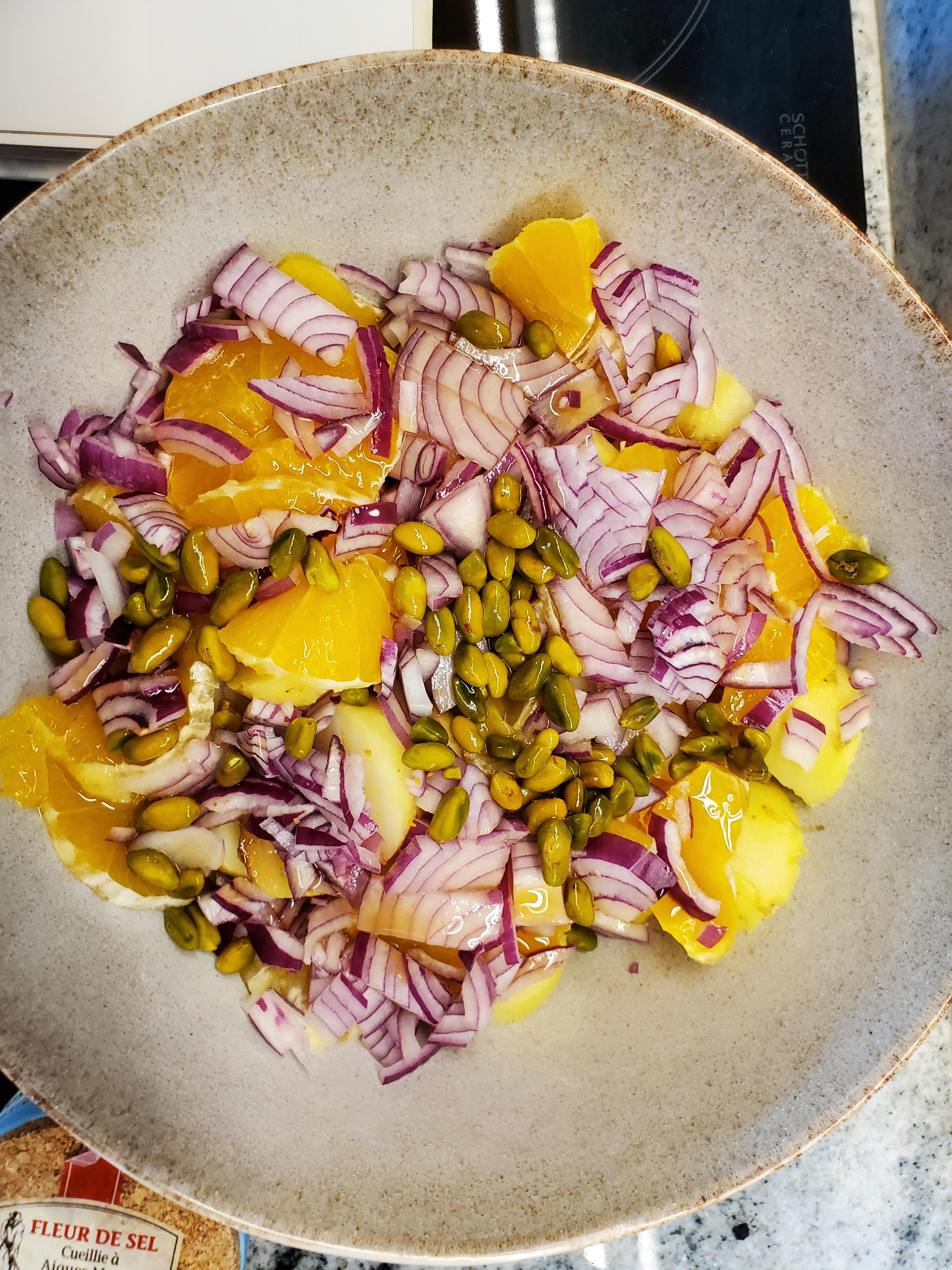 I would roast the onions a lil bit and take out the oranges, but it looks good