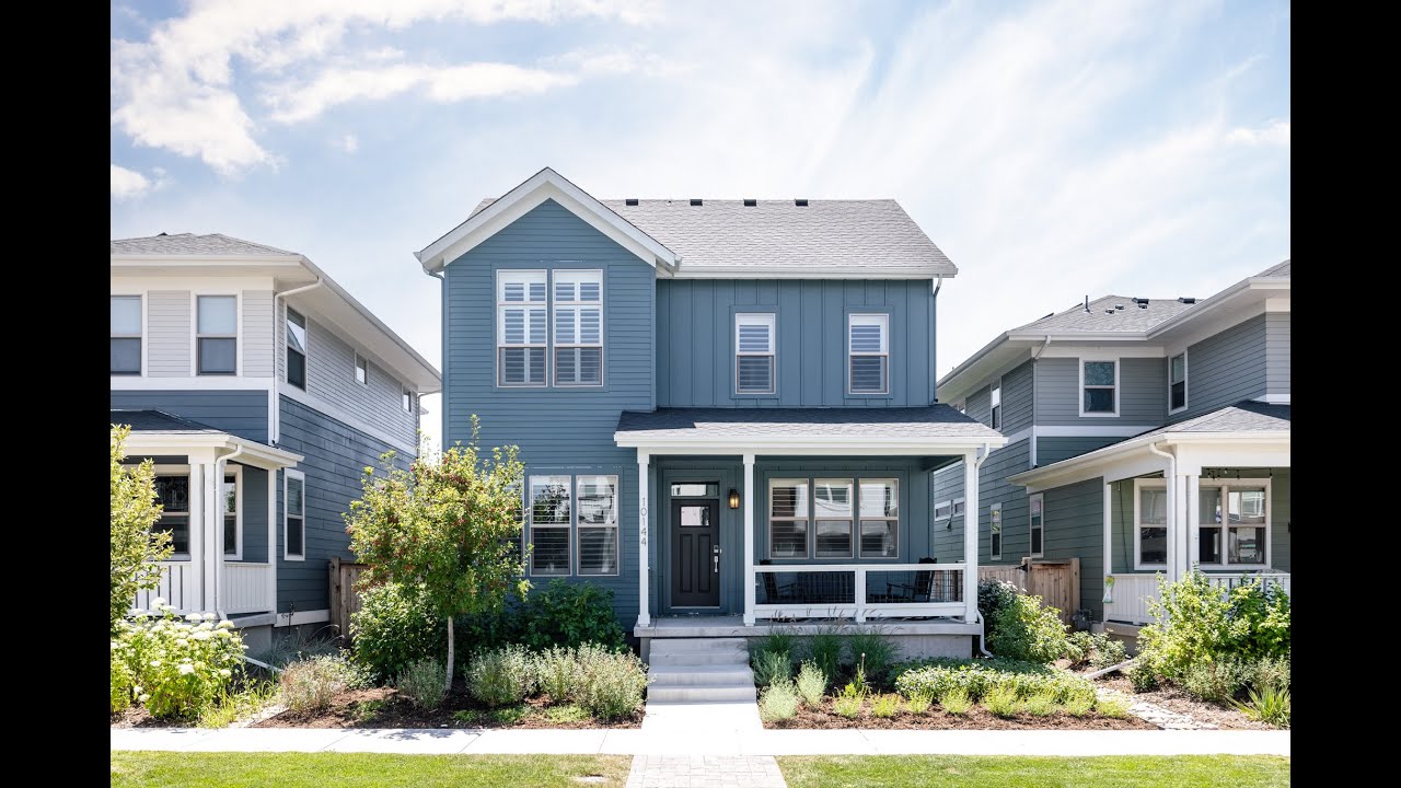 You’re sure to be impressed from the moment you enter this gorgeous energy efficient Thrive home in the North End Neighborhood of Central Park. A spacious covered patio guides you inside where you’ll be delighted to discover engineered hardwoods lining the main level and plentiful windows with custom shutters throughout. Just off the entryway, push open the French doors to find the spacious home office. Adjacent to the office you’ll locate the large dining room, perfect for entertaining. Just off the formal dining area, the galley way with extra cabinetry guides you into the stylish & functional eat-in kitchen. Finishes to note: upgraded appliances including a gas range, modern white cabinetry, quartz counters, decorative backsplash tile, a large island, a spacious pantry and a built-in desk nook. The spacious kitchen opens up nicely to the living room and showcases a modern gas fireplace with stacked stone to the ceiling. The main floor mudroom leads to the garage as well as the gorgeous xeriscaped backyard. A stamped concrete patio guides you to the professionally landscaped yard that is finished with turf, offering the ease of low maintenance living and equipped with the ultimate custom playset. Back inside, venture upstairs where you will find three bedrooms with vaulted ceilings, including a large primary suite with a five piece bathroom and a walk-in closet. The convenient upstairs laundry room comes equipped with an Electrolux washer & dryer. The large finished basement offers additional living space as well as a private guest suite including a full bathroom. You can breathe easy knowing this home is LEED Certified, Energy Star Certified, EPA Indoor airPLUS certified and comes equipped with a leased 3.84 kW solar system that was designed to offset a significant portion of energy usage. Located just a short walk from Central’s Park’s largest pool, basketball courts, sand volleyball, pickleball courts, bike trails, parks, playgrounds and top-rated schools, this Thrive home has it all!