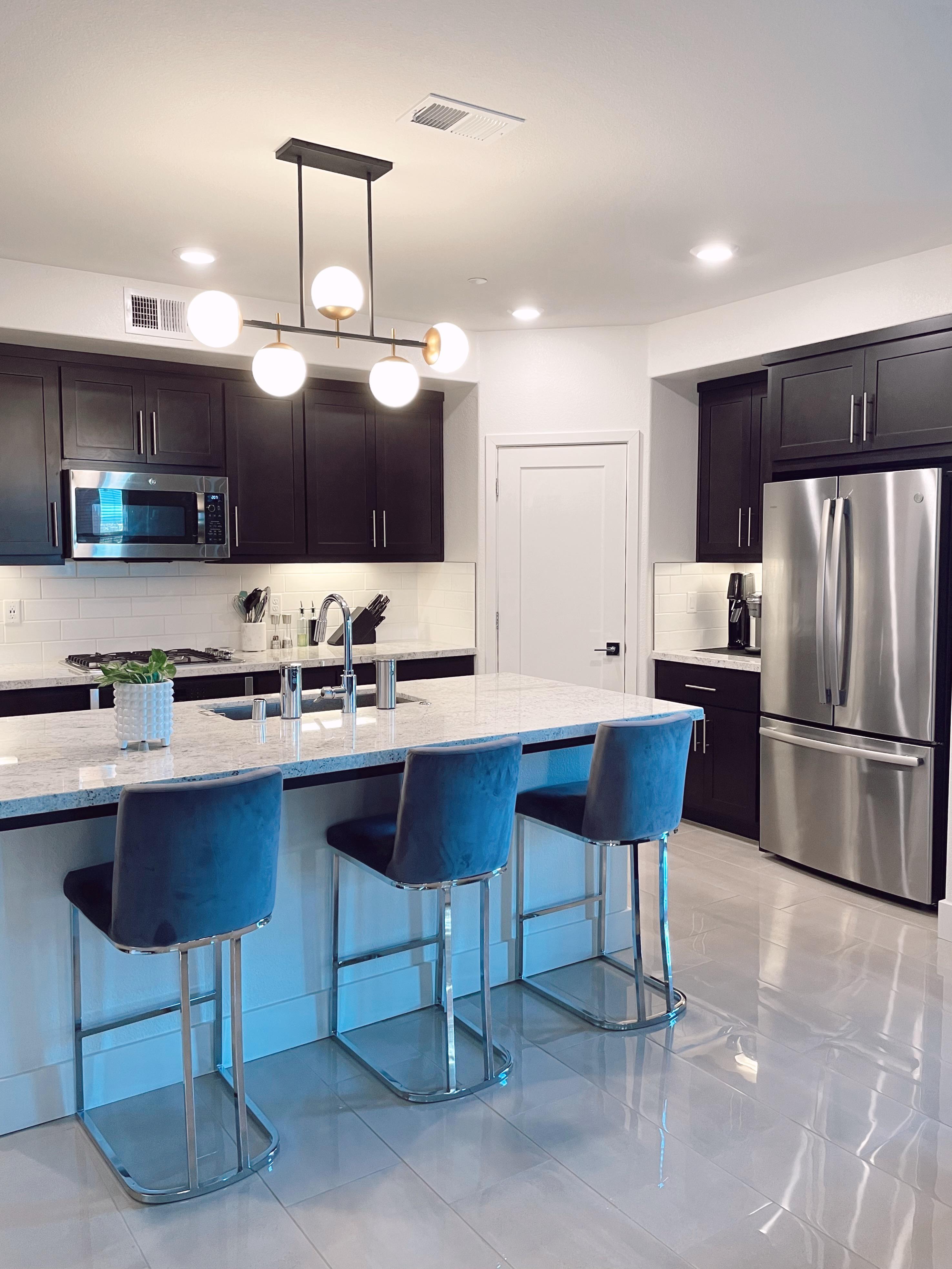 So fresh and so clean. ๐Ÿ™Œ๐Ÿผ We installed the island light recently and still have some improvements to go, but weโ€™re enjoying our builder-grade kitchen for now.
