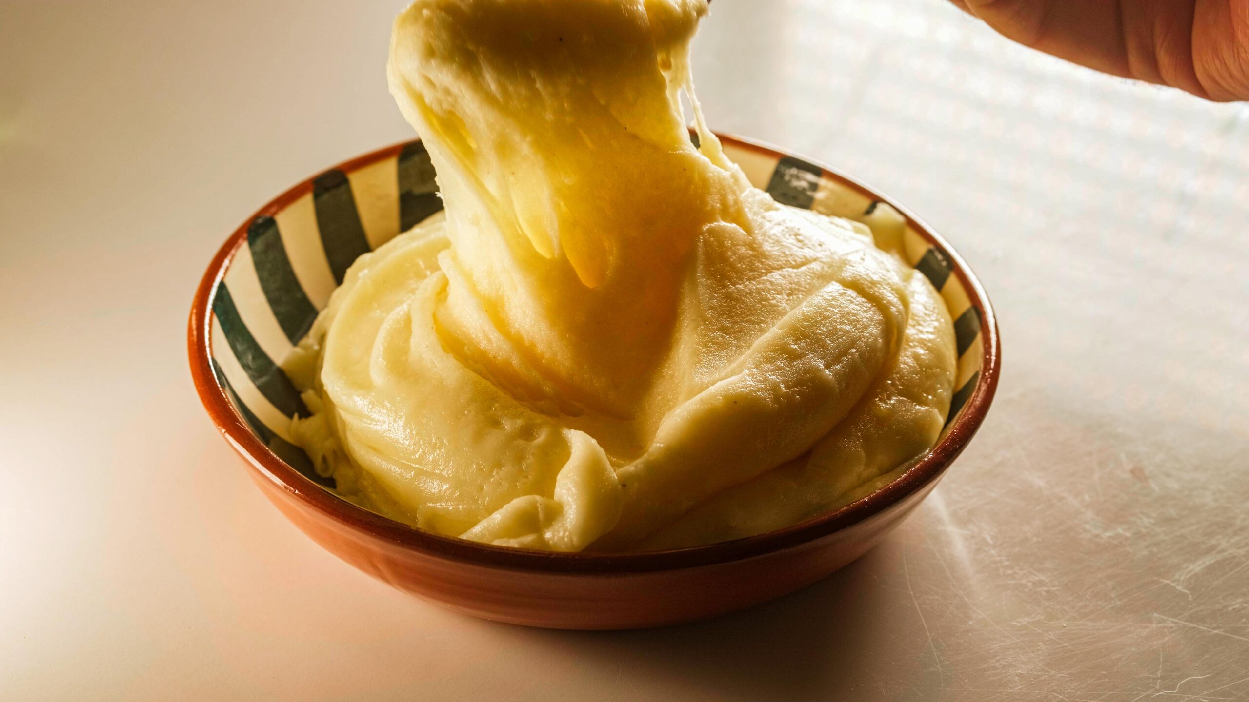 – Attention également en faisant fondre le fromage, il ne faut pas cuire le fromage juste le faire fondre et filer. Il faut donc un feu très doux ou mélanger la purée au fromage hors du feu si la purée est déjà bien chaude. Tourner toujours dans le même sens et de manière énergique, n’hésitez pas à checker de temps en temps si le fromage file.