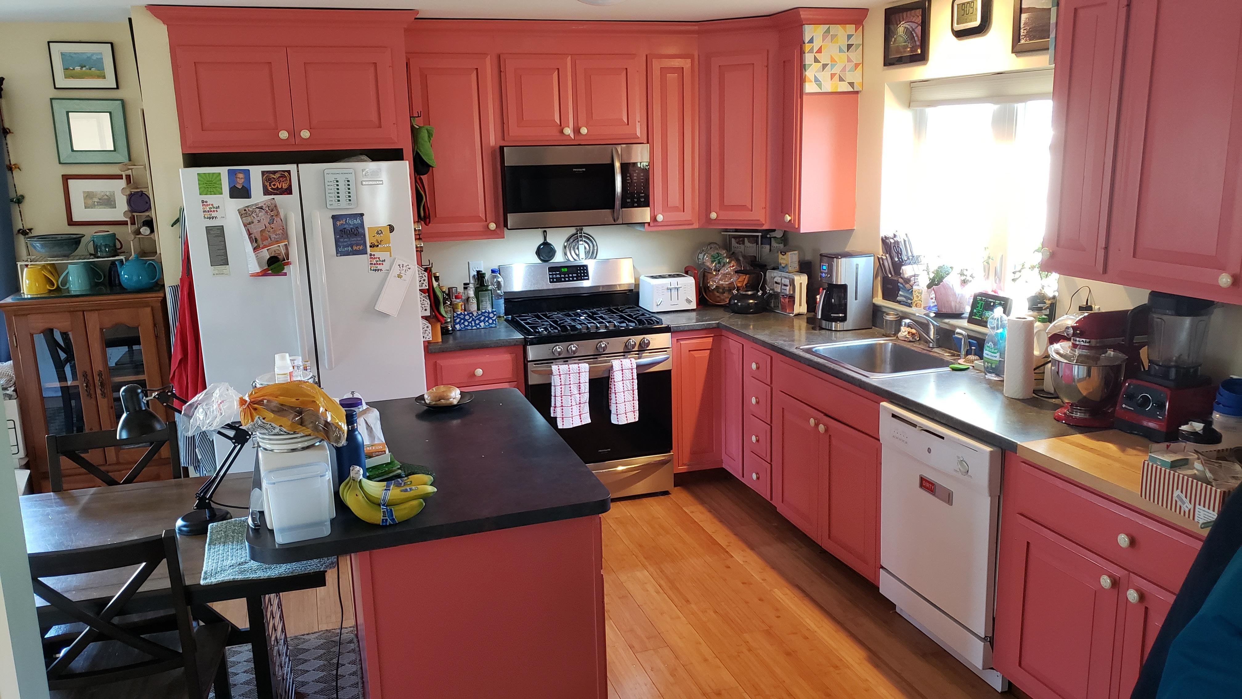 We do a lot of baking and cooking here. Iron pans on the stove, breads made from scratch. Good lighting and surface areas. Love it.