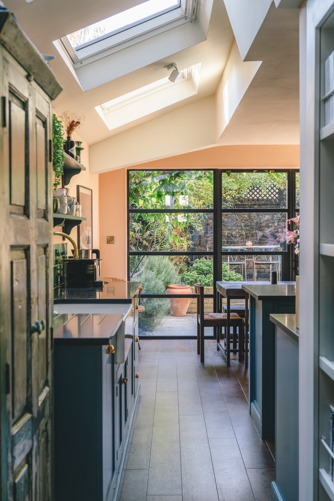 Kitchen extension with skylights added to a four double-bedroom Victorian terrace near Clapham, Lambeth, London, UK [1067×1600]