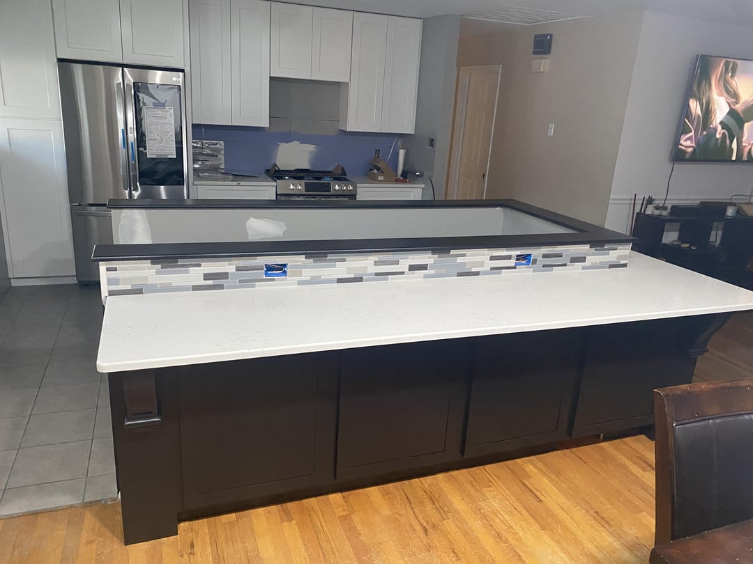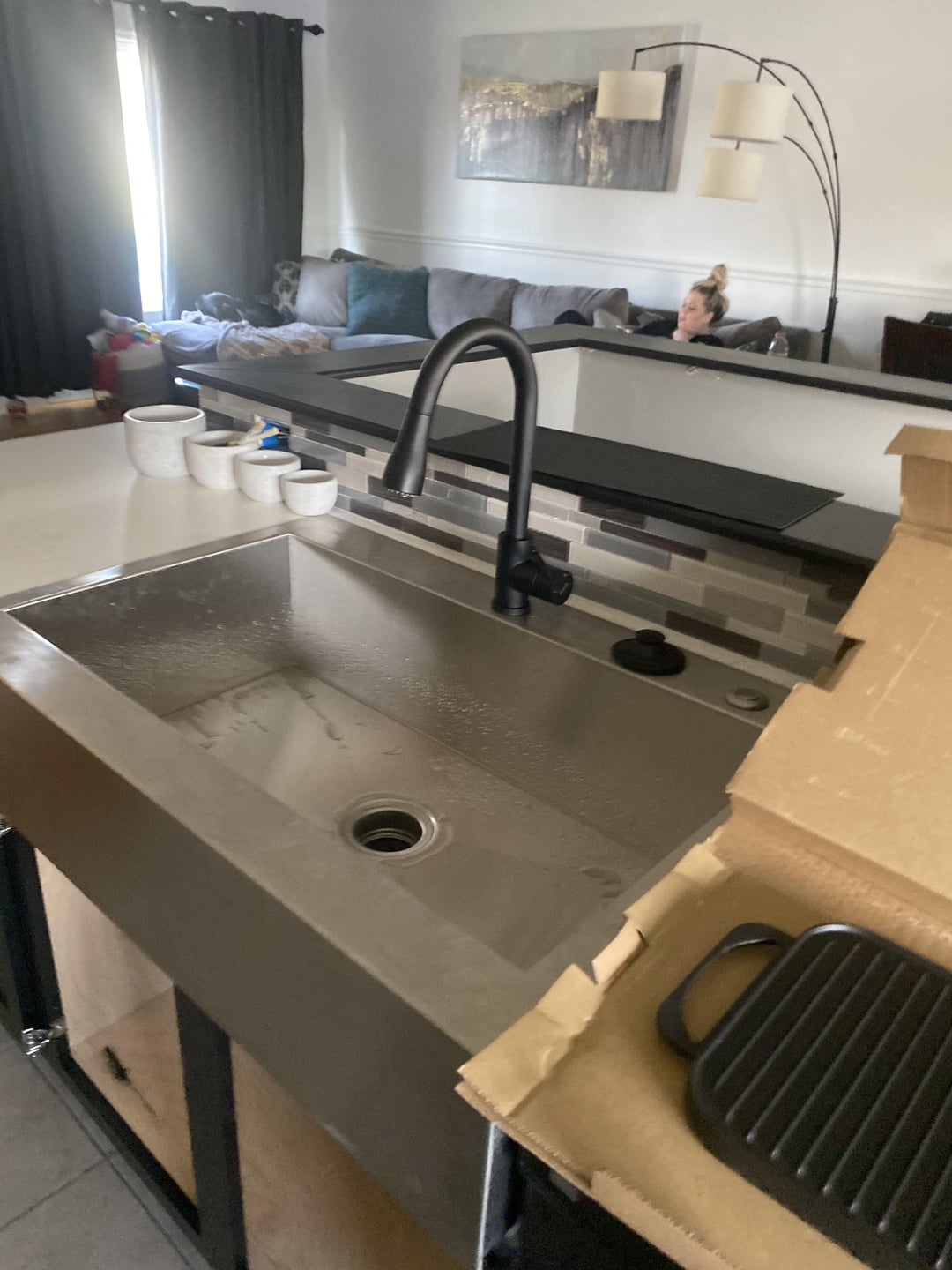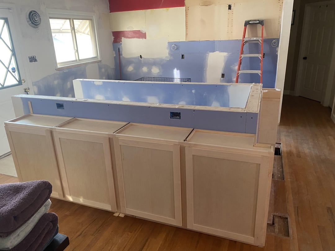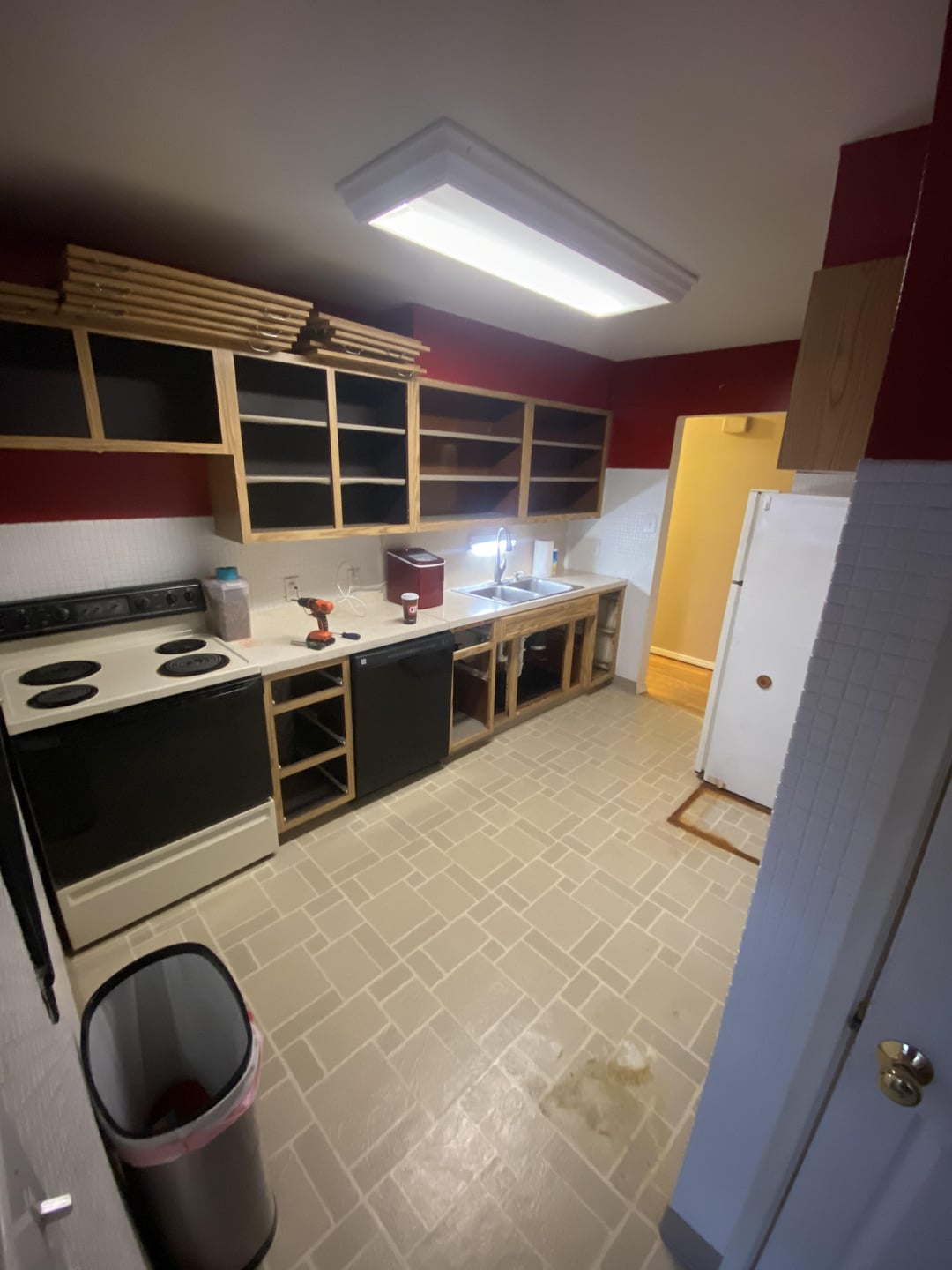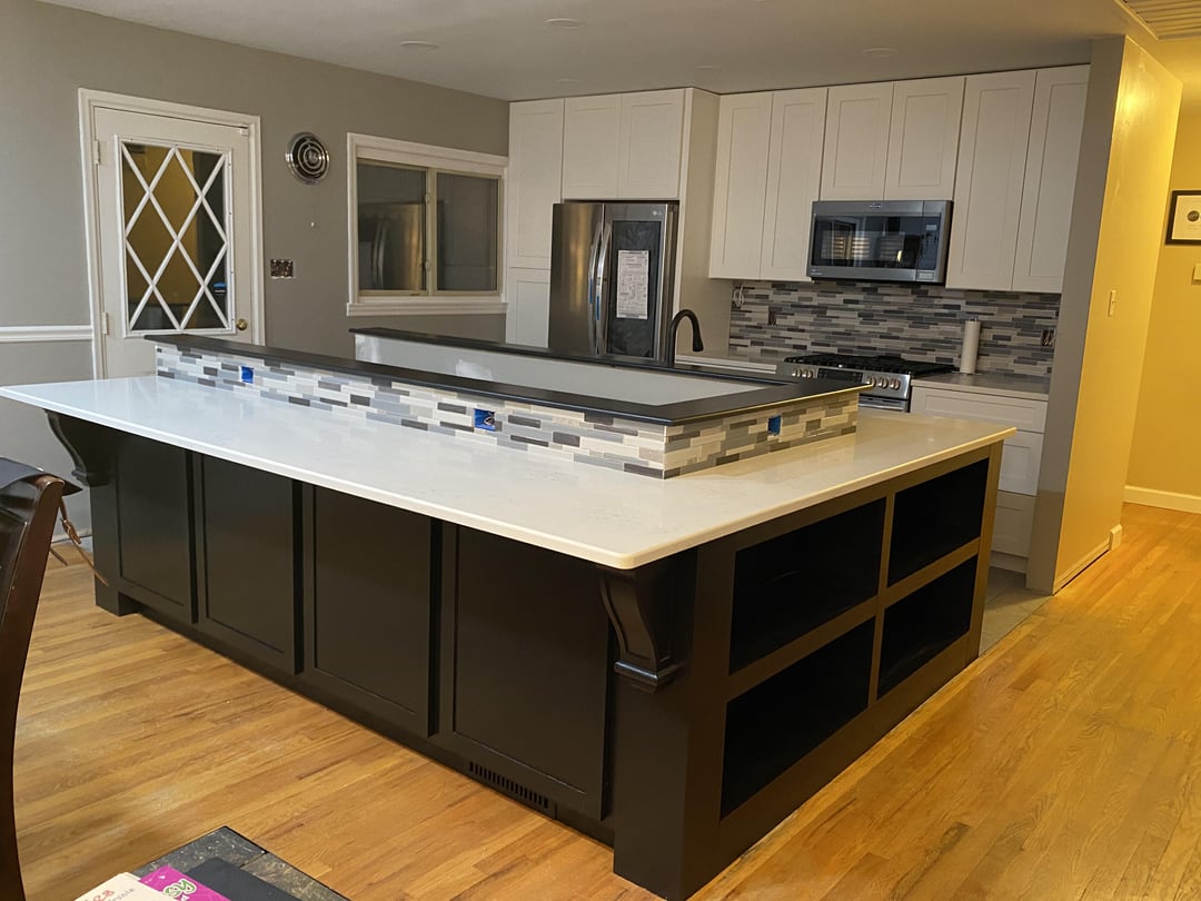 I loveee this island design, I’ve never seen this before. What a great use of space to make sure there’s an entryway for the door. I could never have open cabinets at that level though, my dogs would just be like mmm let me get a little taste of everything lol