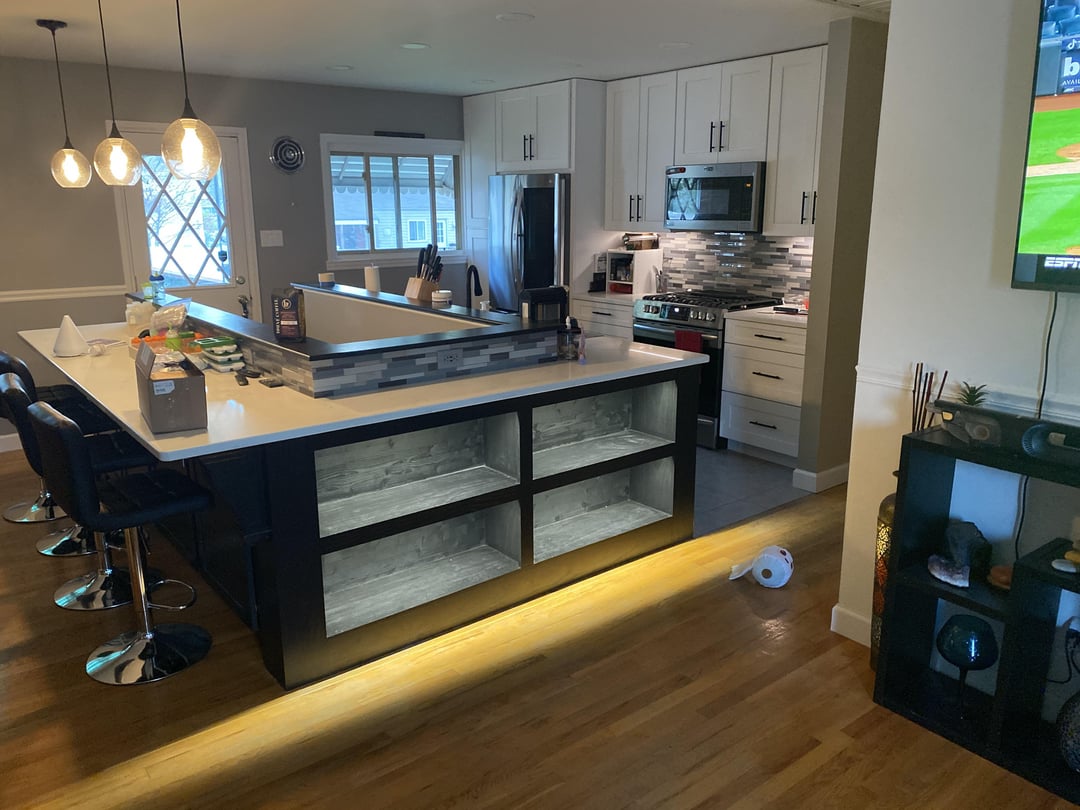This is great design and quality execution JMole3. Here comes my only negative, the pendant lights. The aesthetic is super modern and concise and then there are hangy downs blocking my view of it all. That is all I would say, and this from hundreds of miles away.