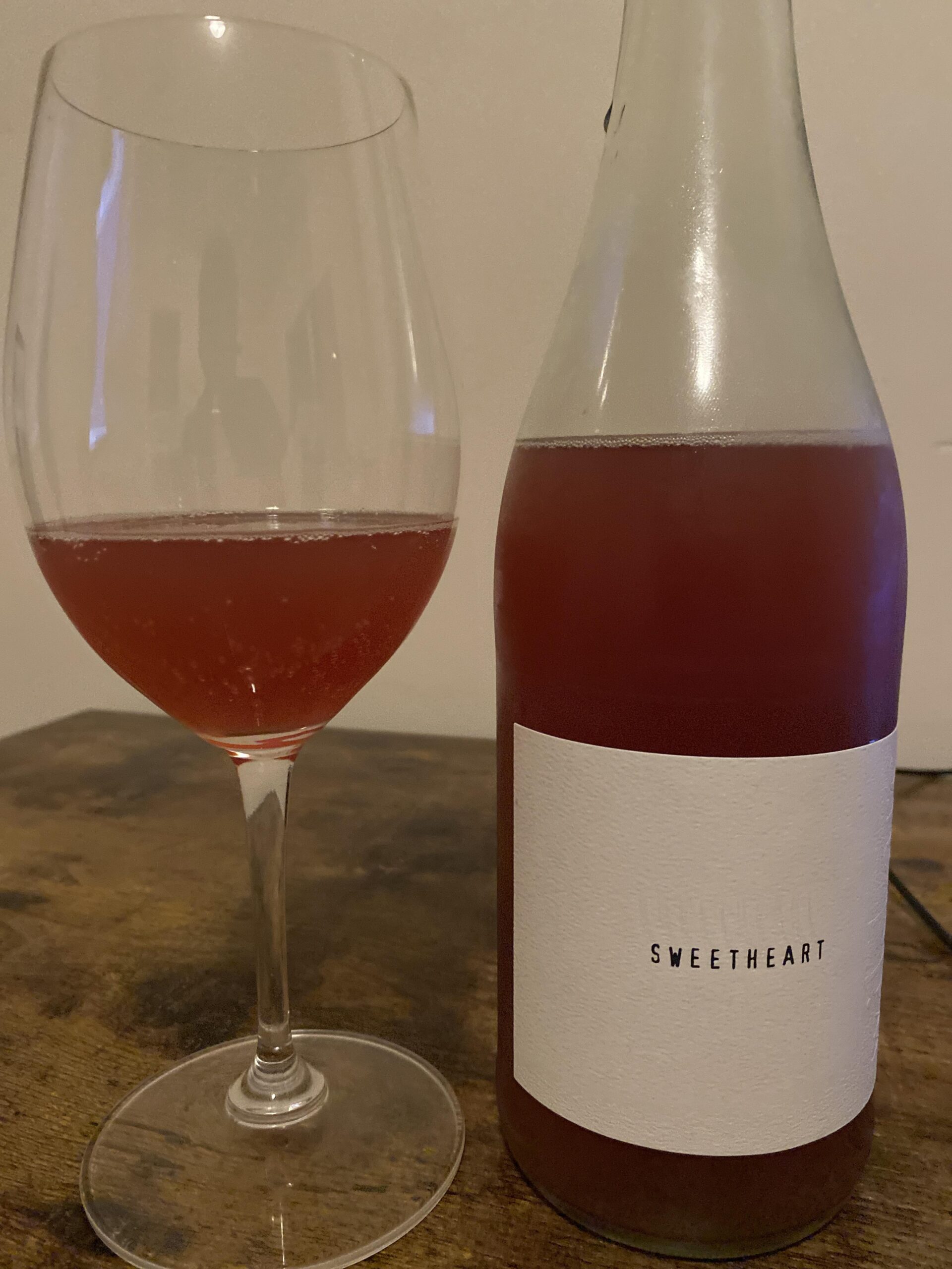 **Wild Arc “Sweetheart”:** An 100% Northern Spy apple and red grape (Cabernet Franc, Merlot, Gamay) coferment, aged on red grape must for two months, pressed into neutral French oak for 4 months, and bottled with local honey to kickstart the second fermentation in bottle. Purchased from Brooklyn Wine Exchange in Brooklyn.
