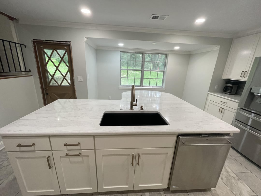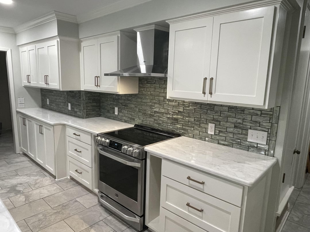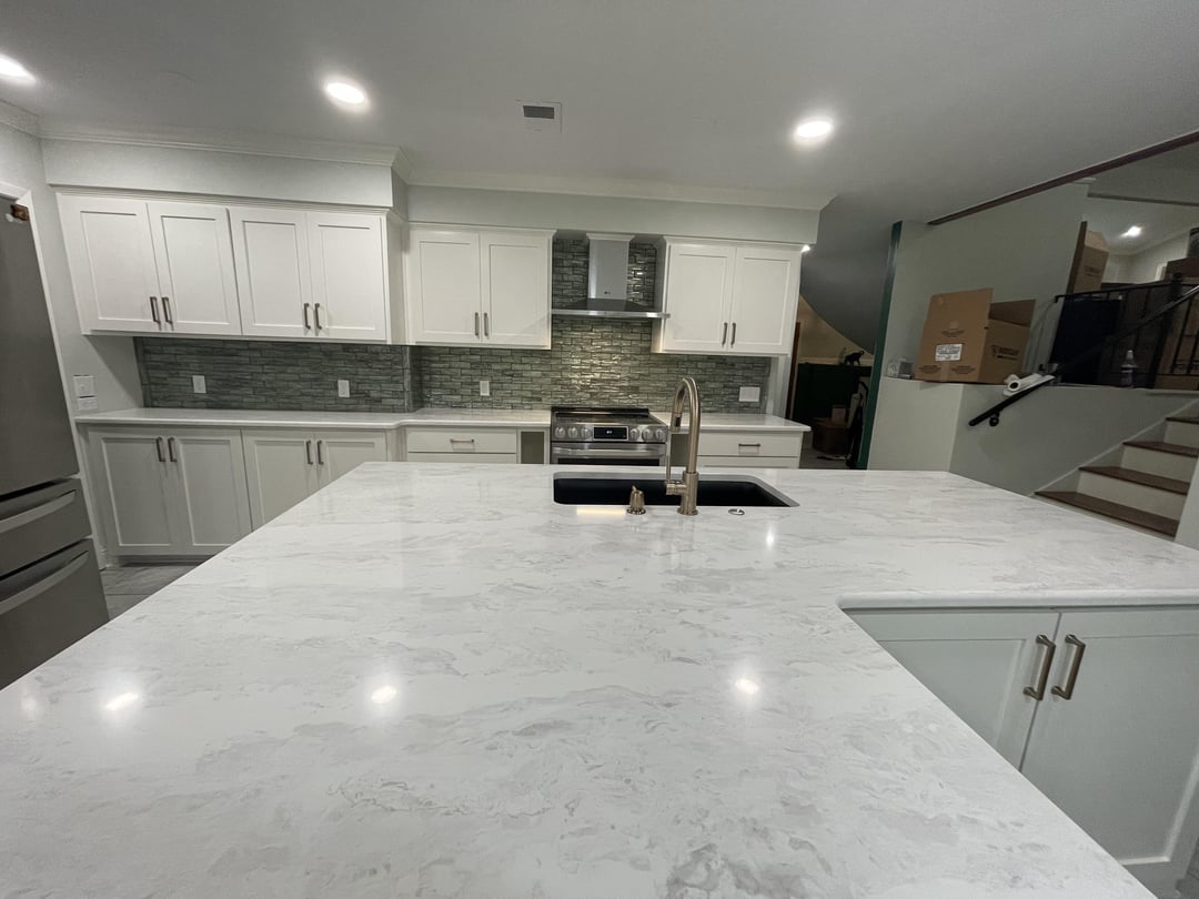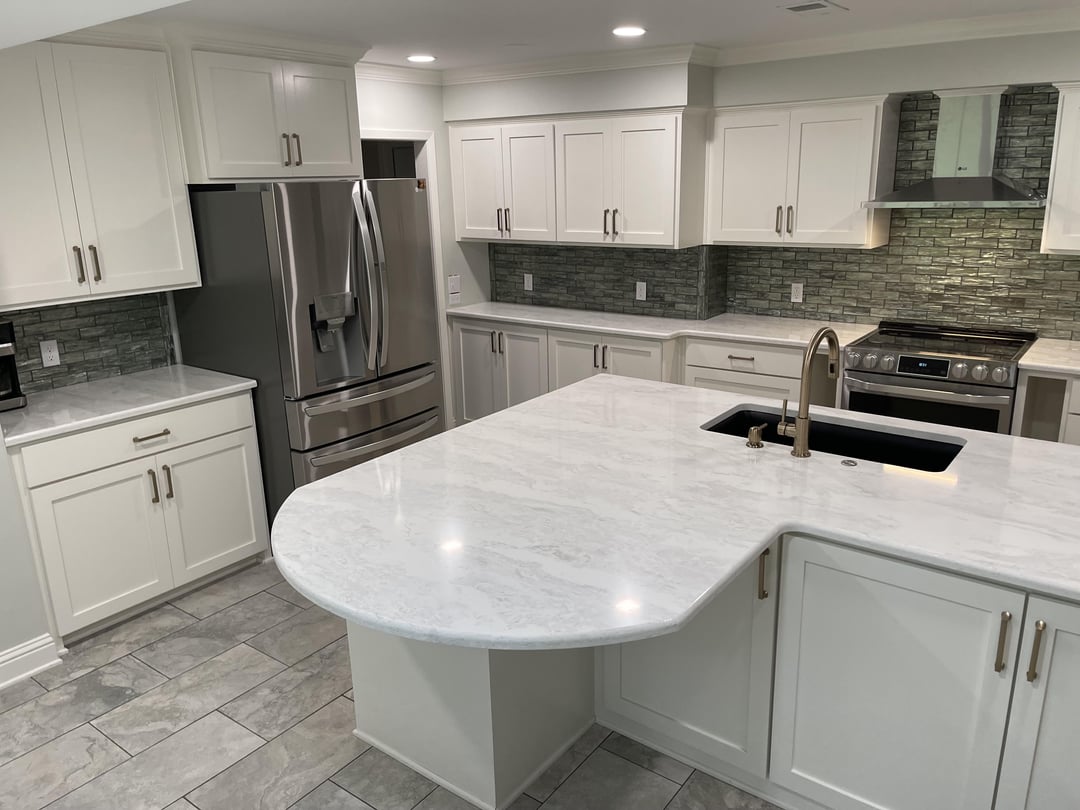 Nice job. I assume you posted it here for some feedback so here goes. To be a critic, the kitchen feels cold. Could have benefited from wood somewhere to warm it up, a contrasting island, or just something that wasn’t white or gray. Not a fan of the backsplash choice. When adding a contrasting element, you’re always going to draw attention to that element, and I just don’t think the backsplash is nice enough to warrant the attention it’s demanding.