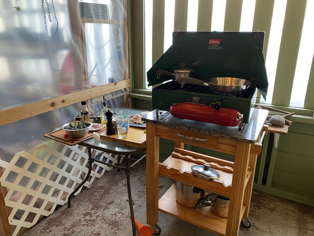 Looks like the start of ours, including the craft services area. Good luck! *We are seven weeks in.