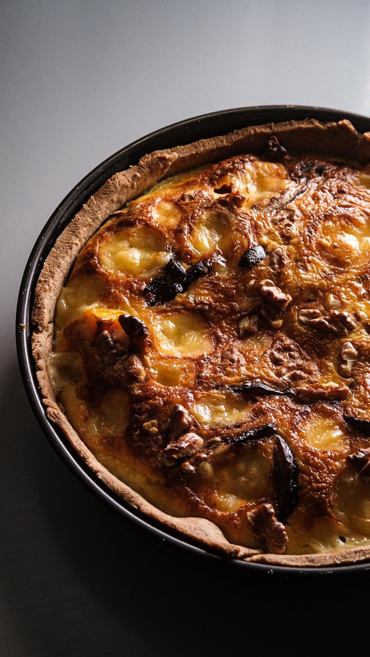 Steps 🗒️ 1. On va d’abord s’occuper de rôtir le butternut, pour cela on va préchauffer le four à 220° puis découper le butternut en cubes (plus ils sont gros plus ça sera long à cuir) 2. Déposer les cubes sur une plaque allant au four et verser un filet d’huile végétale, sel, poivre, les gousses d’ail écrasées et le thym 3. Enfourner pendant 25min 4. Préparer la pâte brisée en mélangeant tous les ingrédients dans la cuve d’un robot jusqu’à obtenir une pâte 5. Dans un saladier, mélanger les oeufs, la crème, sel et poivre 6. Couper les shiitake en fines lamelles et les faire revenir dans une poêle pendant quelques minutes 7. Déglacer au mirin (ou vin blanc) et ajouter la sauce soja 8. Monter la quiche en déposant dans le fond de tarte : le butternut, shiitake, cubes de comté et la préparation. 9. Concasser quelques cerneaux de noix sur le dessus et enfourner à 180° pendant 35-40min