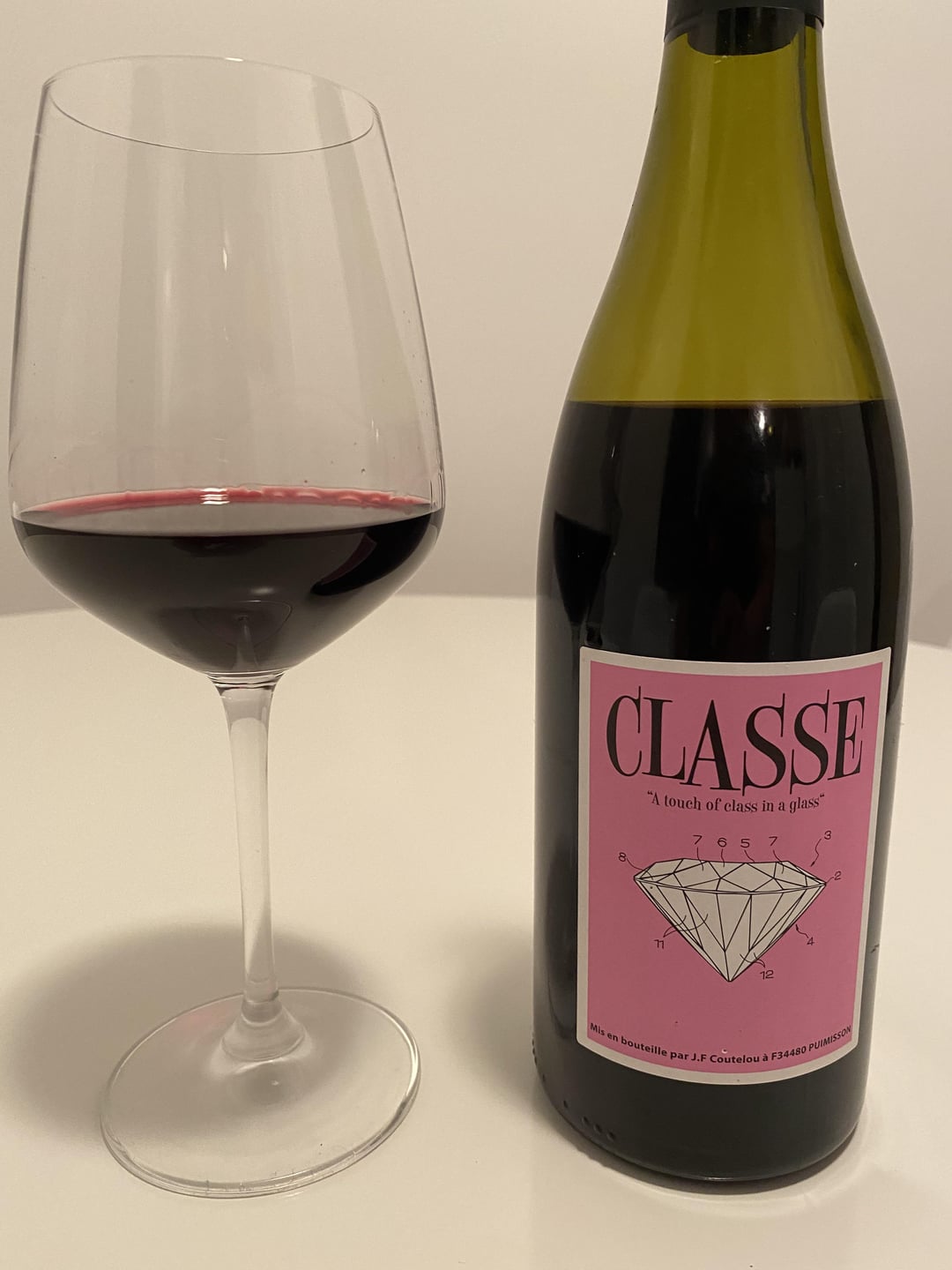 **Mas Coutelou, “A Touch of Class in a Glass”:** 60% Syrah, 40% Grenache, Languedoc based, chalky-clay soils. Purchased from Discovery Wines in Manhattan.