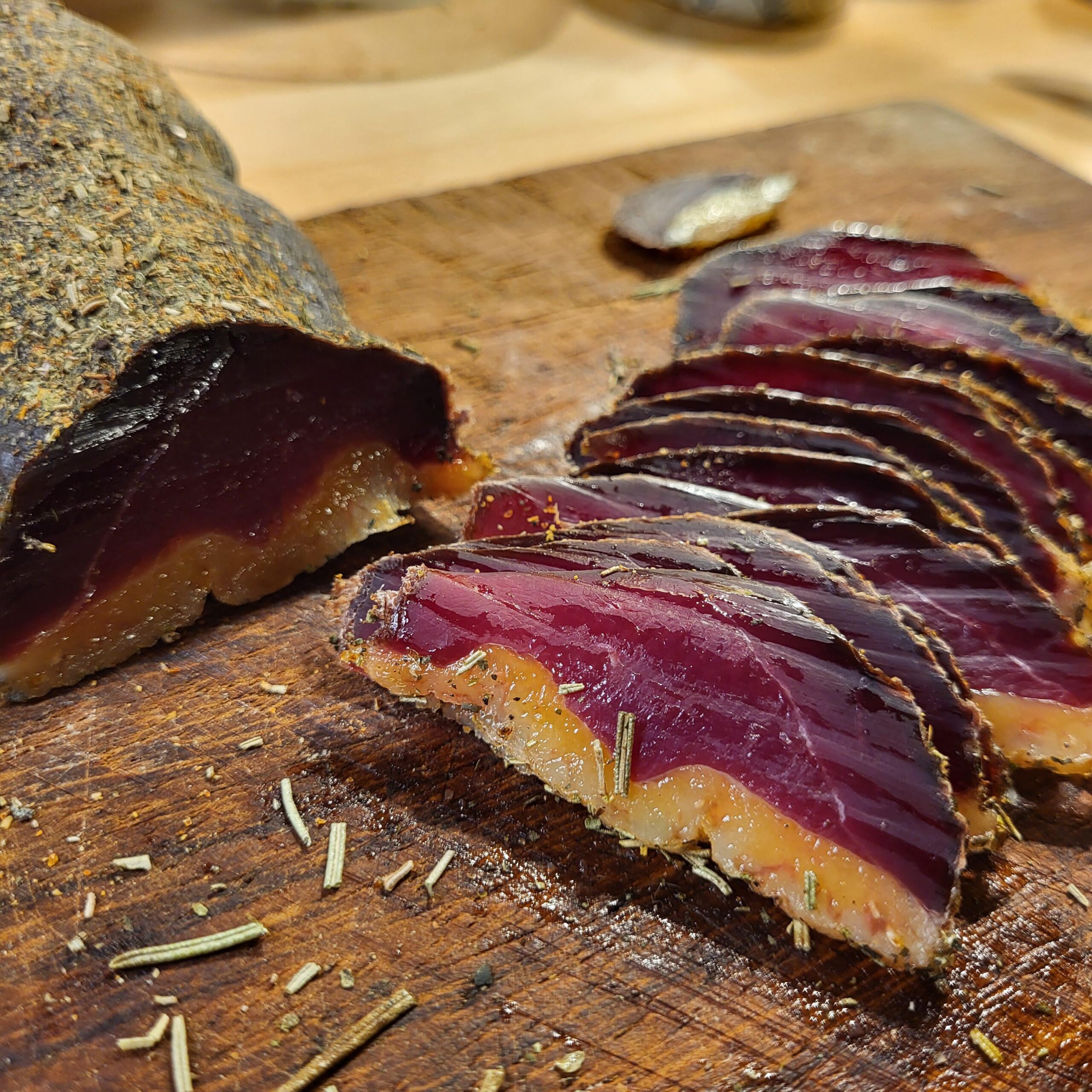 Il a été pressé/roulé pour que l’arôme des épices et le gras pénètrent davantage ? Il est arrondi comme un filet !