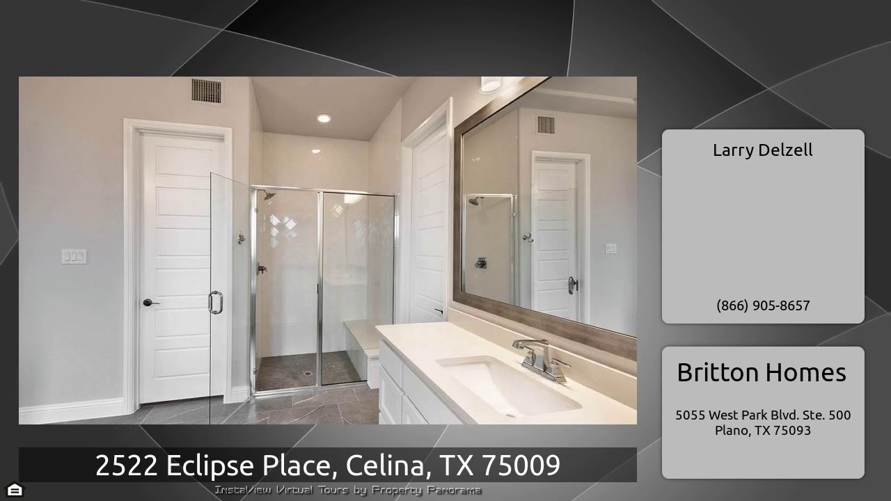 The Virtual Tour for the property at 2522 Eclipse Place, Celina, TX 75009 listed for $524,900: Other homes for sale by Larry Delzell of Britton Homes: BRITTON HOMES NEW CONSTRUCTION READY FOR MOVE-IN! Front courtyard. Two-story entry. Formal dining room. Study with French doors. First floor guest suite. Family room with a fireplace and wall of windows. Kitchen features an island with built-in seating space and a walk-in pantry. Morning area just off of the kitchen. Private master suite with a wall of windows. Master bath with double door entry includes a garden tub, separate glass-enclosed …