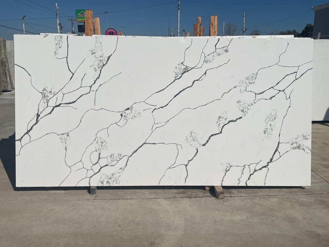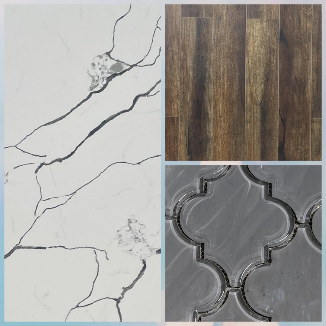 The darker backsplash will look like an odd belt on your kitchen… like say you have an all white outfit on then accessorize it with a heavy grey belt..,. It cuts a person in half and It cuts the kitchen in half making it look shorter than what it is. You want that flow from the bottom to the top… so with white cabinets, that Quartz, with the Calacatta gold marble backsplash and white upper cabinets it will have a nice flow to it.