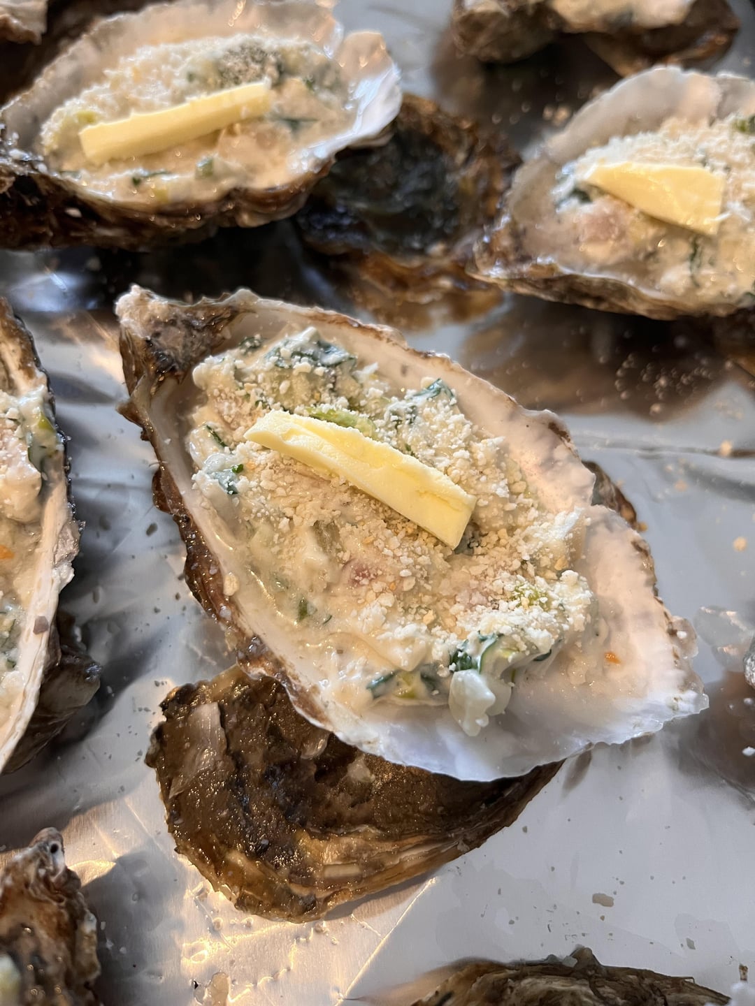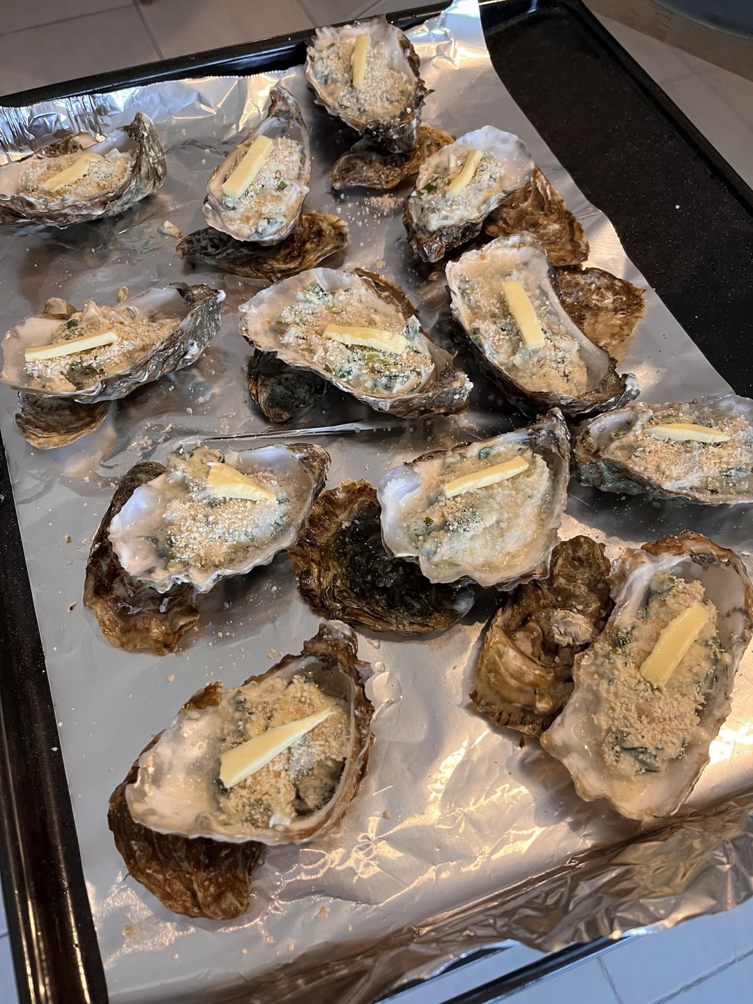 C’est un truc à essayer .J’avais fais une fondue échalote/beurre, puis un peu de crème/parmesan (et une pincée de chapelure) avant de passer un petit coup au grill, c’est vraiment très bon très surprenant , ceux que ne mangent pas d’huître habituellement osent goûter et son agréablement surpris, franchement c’est à faire au moins une fois !