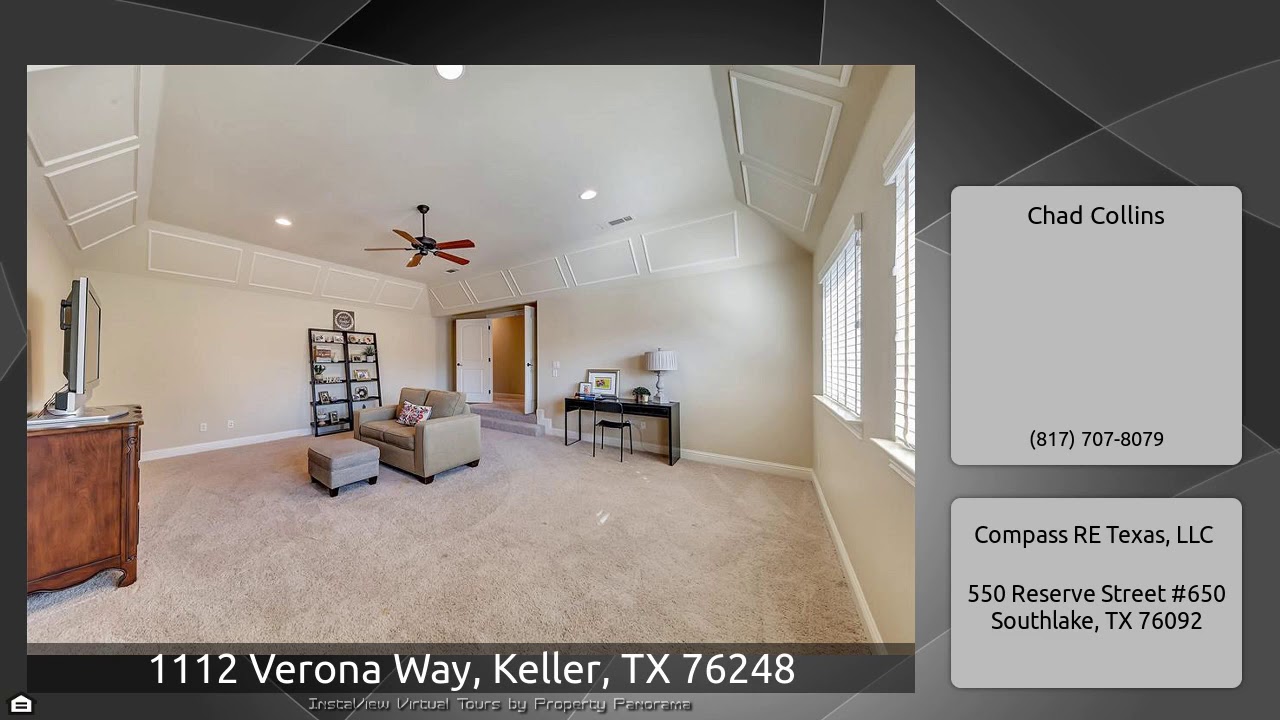 The Virtual Tour for the property at 1112 Verona Way, Keller, TX 76248 listed for $550,000: Other homes for sale by Chad Collins of Compass RE Texas, LLC: Custom detailing prevails in this impressive home sited on a premier corner lot in the renowned Bella Vista of Keller. The functional floor plan boasts 3452 square feet of living including four bedrooms, three-and-a-half bathrooms, a dedicated study with French doors, a chef's kitchen, two dining areas, a second-level game room, utility area and a three-car oversized garage with insulated cedar doors. Amenities include rich hardwood …