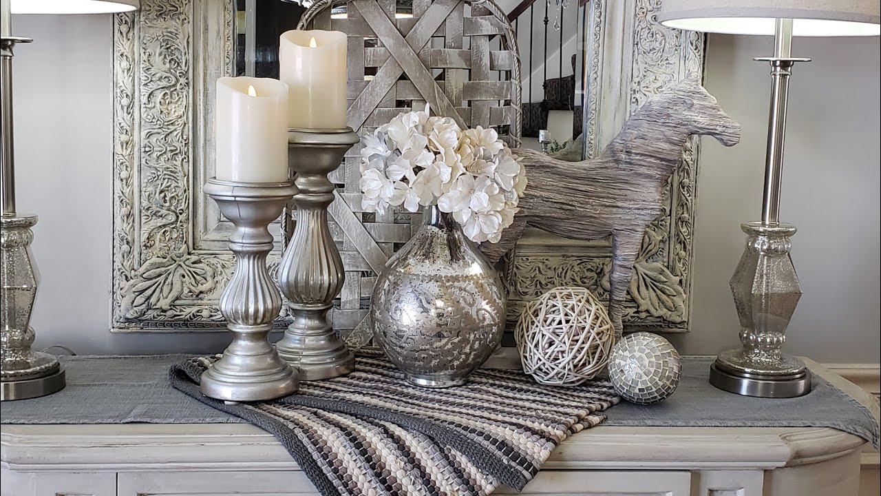 Hey guys, today we’re going to decorate my buffet. I will share some tips and ideas on how I put together a few vignettes.
