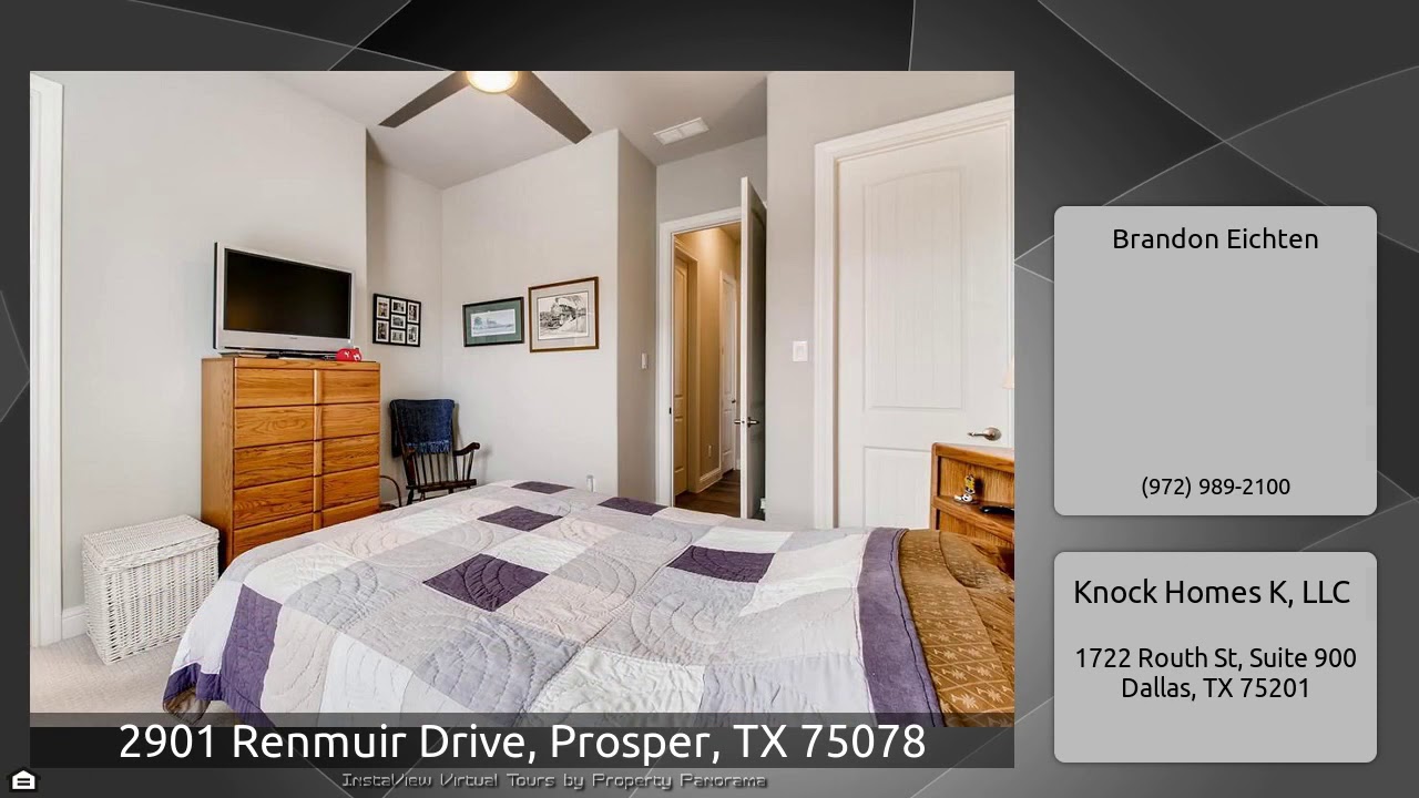 The Virtual Tour for the property at 2901 Renmuir Drive, Prosper, TX 75078 listed for $469,900: Other homes for sale by Brandon Eichten of Knock Homes K, LLC: Soaring, bright, fireside family room welcomes you into this beautiful home with attention to detail throughout! Family room opens to gourmet kitchen fit for any chef featuring subway tile backsplash, gas cooktop, ample cabinet storage, and spacious island with room for dining. French doors to den, study, or office could also be formal dining room. Private first floor master retreat features tray ceiling and luxurious ensuite bath …