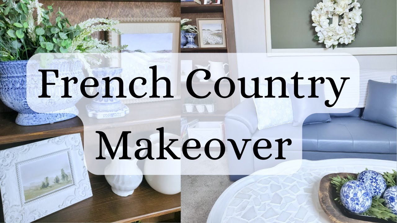 Check out the first part of my french country living room makeover with lots of second hand, shabby chic, grandmillenial, traditional, and french country decor as well as a furniture flip using real marble tiles.