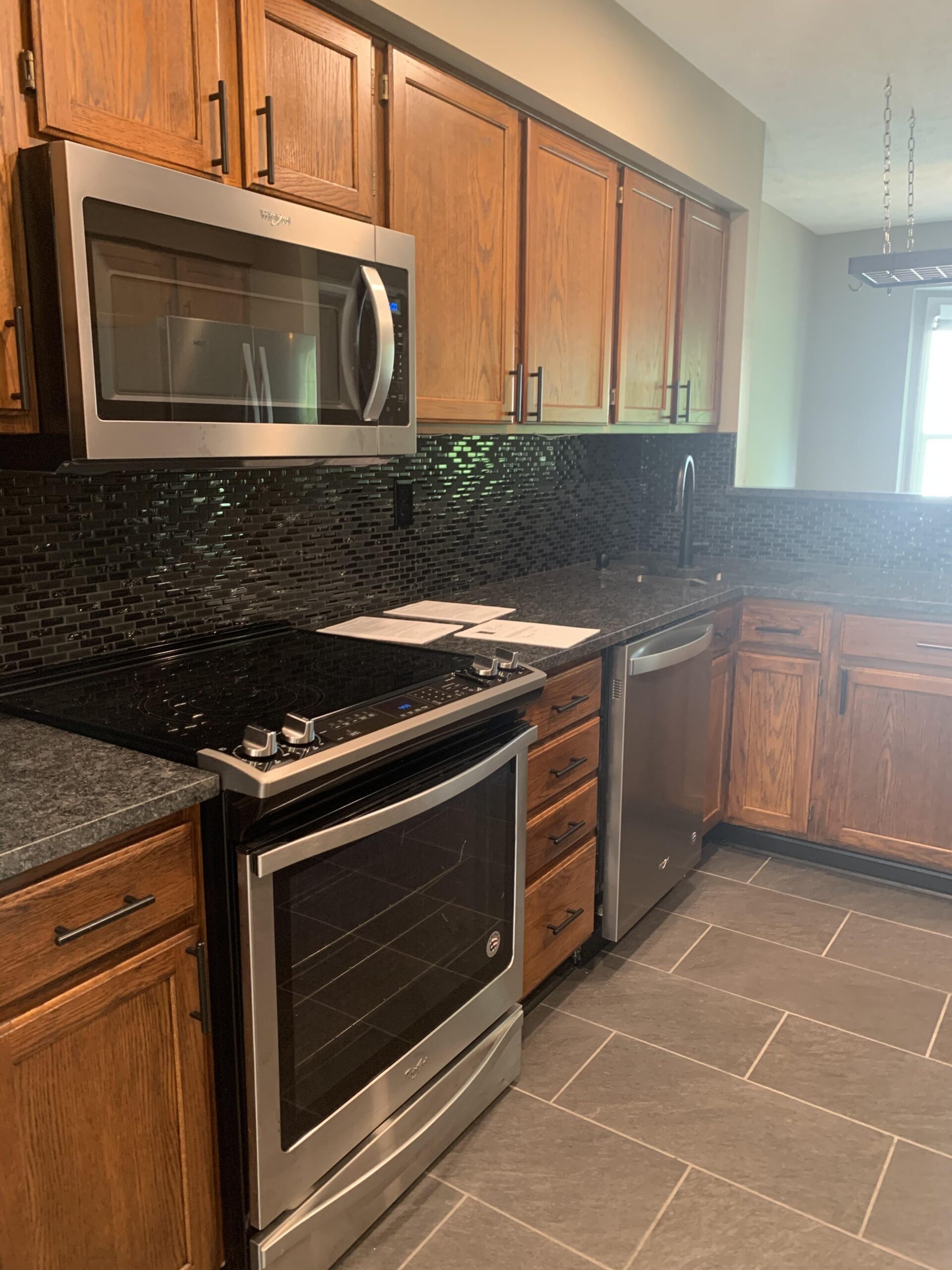 Now…. easy change with less work would be paint cabinets white and DONE!!! reason being… brown on walls… sooooo… personal preference