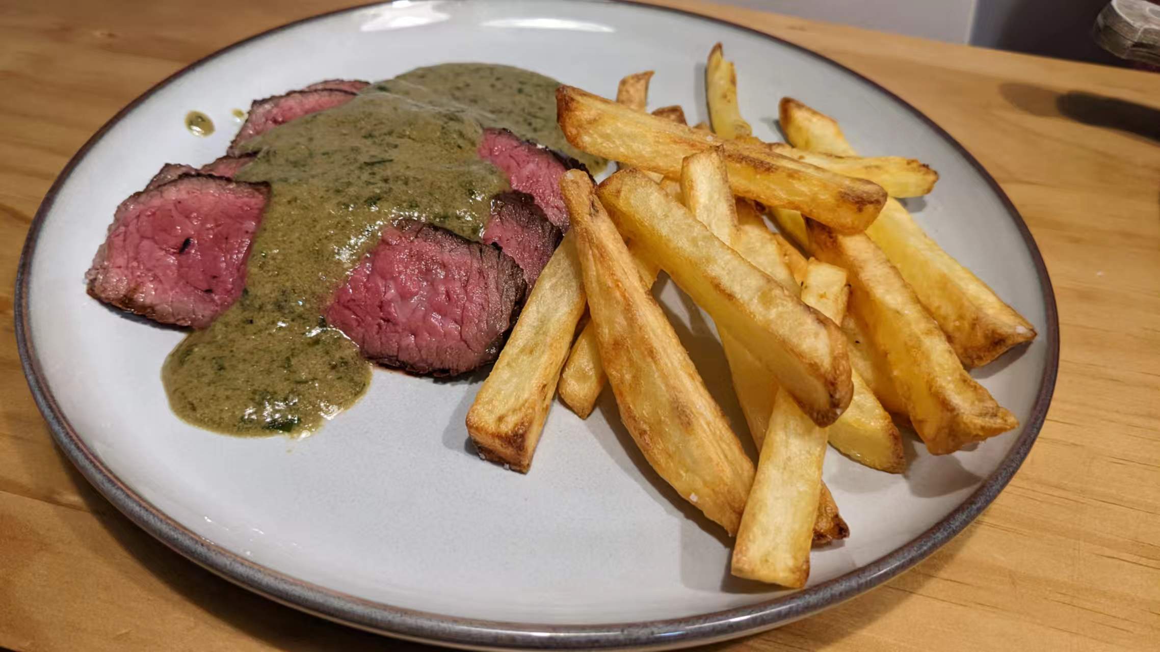 kunlun 3 years ago J’ai suivi les instructions ici : http://www.atoute.org/n/Recette-de-la-sauce-entrecote.htmlVraiment similaire à la recette du restaurant.Les frites sont faites au Air Fryer, plutôt bonnes mais je les ferais plus fine la prochaine fois.