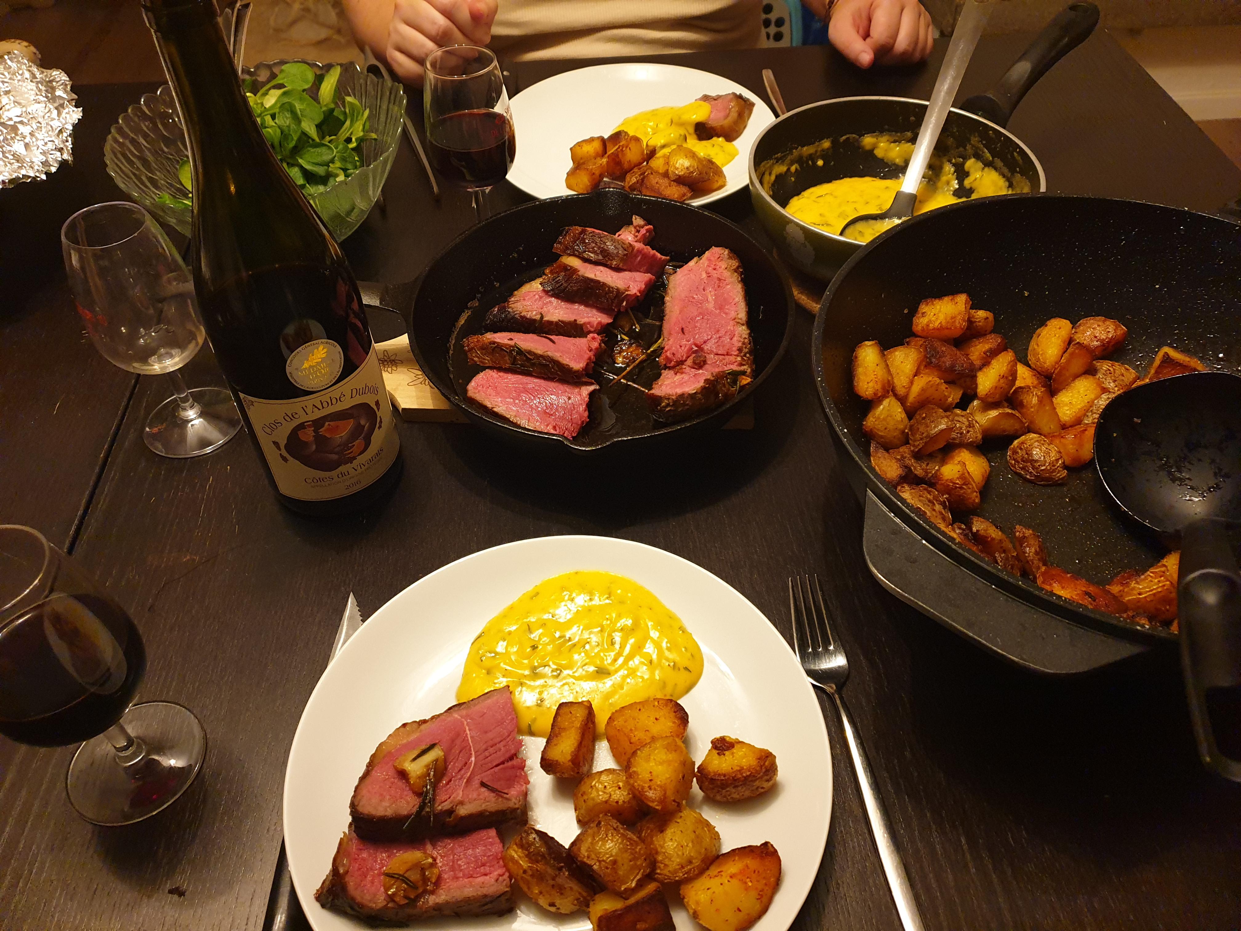 Côte de bœuf, sauce béarnaise et pommes de terre confites, le tout arrosé d’un Côtes du vivarais, dernier souvenir d’un passage en Ardècheby AnnaRocka Bonne BouffeCuisine d'ici et d'ailleurs 7 Comments Infinite_Maximum_141 3 years ago 🥵 toumstone 3 years ago Vous vous mettez bien ! Raziel219 3 years ago Ça ne se laisse pas dépérir en Ardèche, bon appétit ! Larkonath 3 years ago C’est pas la dèche en Ardèche ! Carnal-Pleasures 3 years ago Je ne connais pas ce vin, dit nous en plus. [deleted] 3 years ago Je suis un mec simple : je vois des patates, je plussois 👍 [deleted] 3 years ago Ça a l’air trop bon miam 😋Write A CommentYou must be logged in to post a comment.