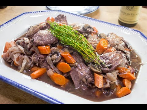 Coq au Vin is the classic French braise of chicken and vegetables. You can make the dish in advance, as I always do, and then reheat it on the stove top shortly before serving time. Thank you for watching. Ingredients for 6 servings listed below.