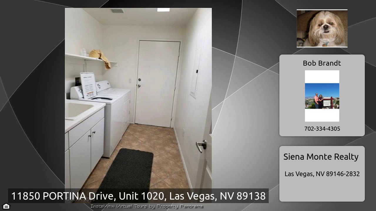 The Virtual Tour for the property at 11850 PORTINA Drive, Unit 1020, Las Vegas, NV 89138 listed for $1,990: Other homes for sale by Bob Brandt of Siena Monte Realty: Big 2 Bed Rooms and a Large Den with french doors( study or bed room ) 2 full baths, Family Room and Dining room with fireplace. so nice large storage area Great Kitchen, attached 2 car garage. Super position in community. Clean Clean Clean. rare entry to house from 2 car garage wow. Great Living EZ Style. Home at Last. You will love this home. no carpet, high quality flooring, fresh home.
