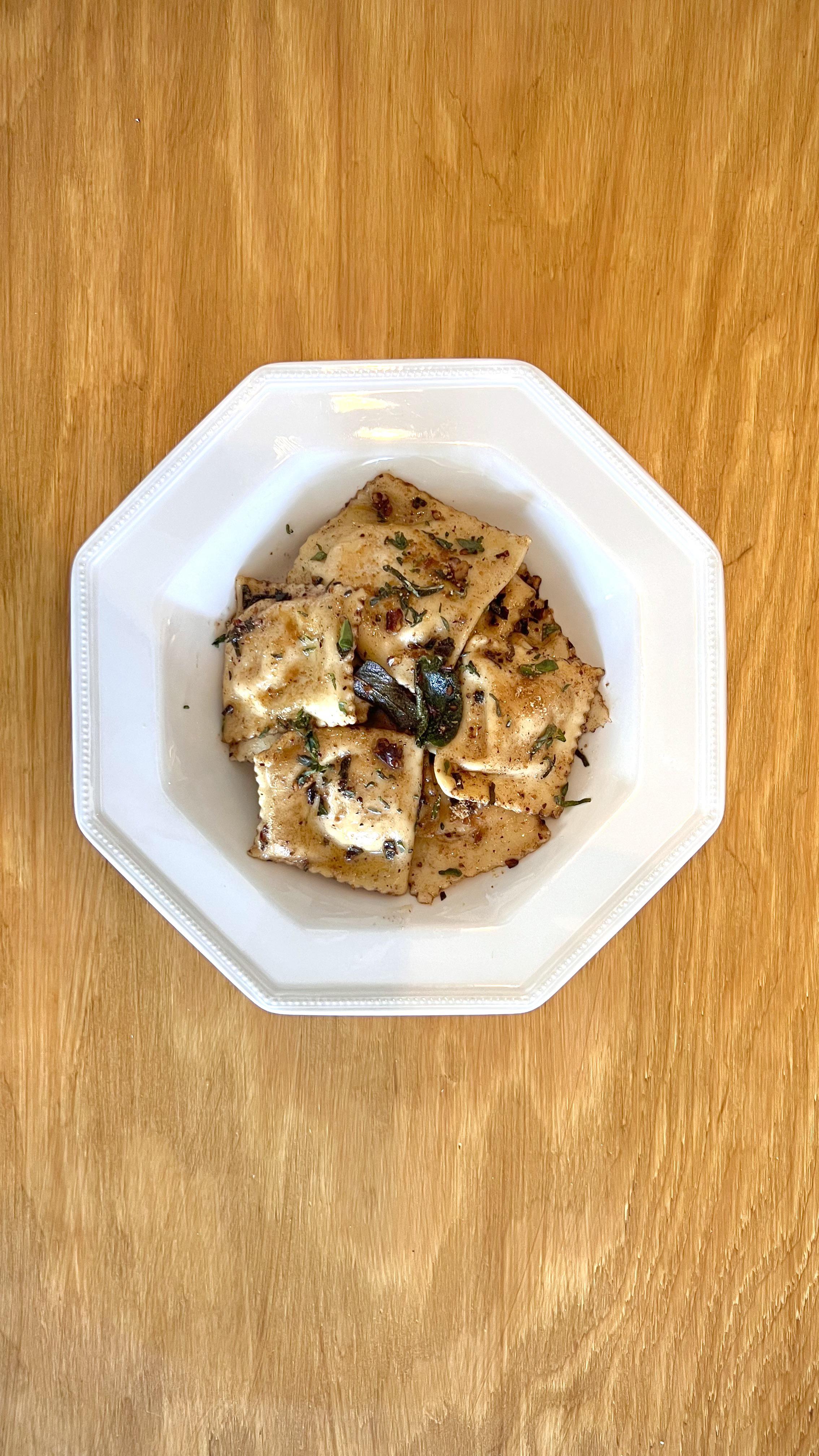 Je connais pas mal l’alliance pâtes / ravioles butternut et sauge. Au debut j’étais un peu perplexe mais une fois goûté c’est validé !
