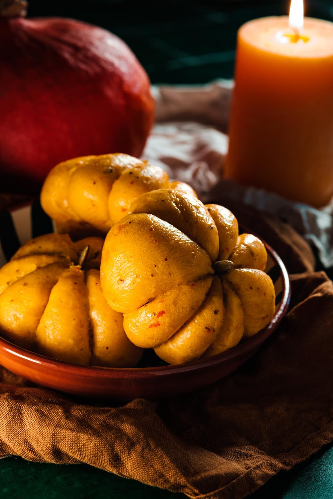 – Découper du film alimentaire et former vos pumpkin baos (voir video)