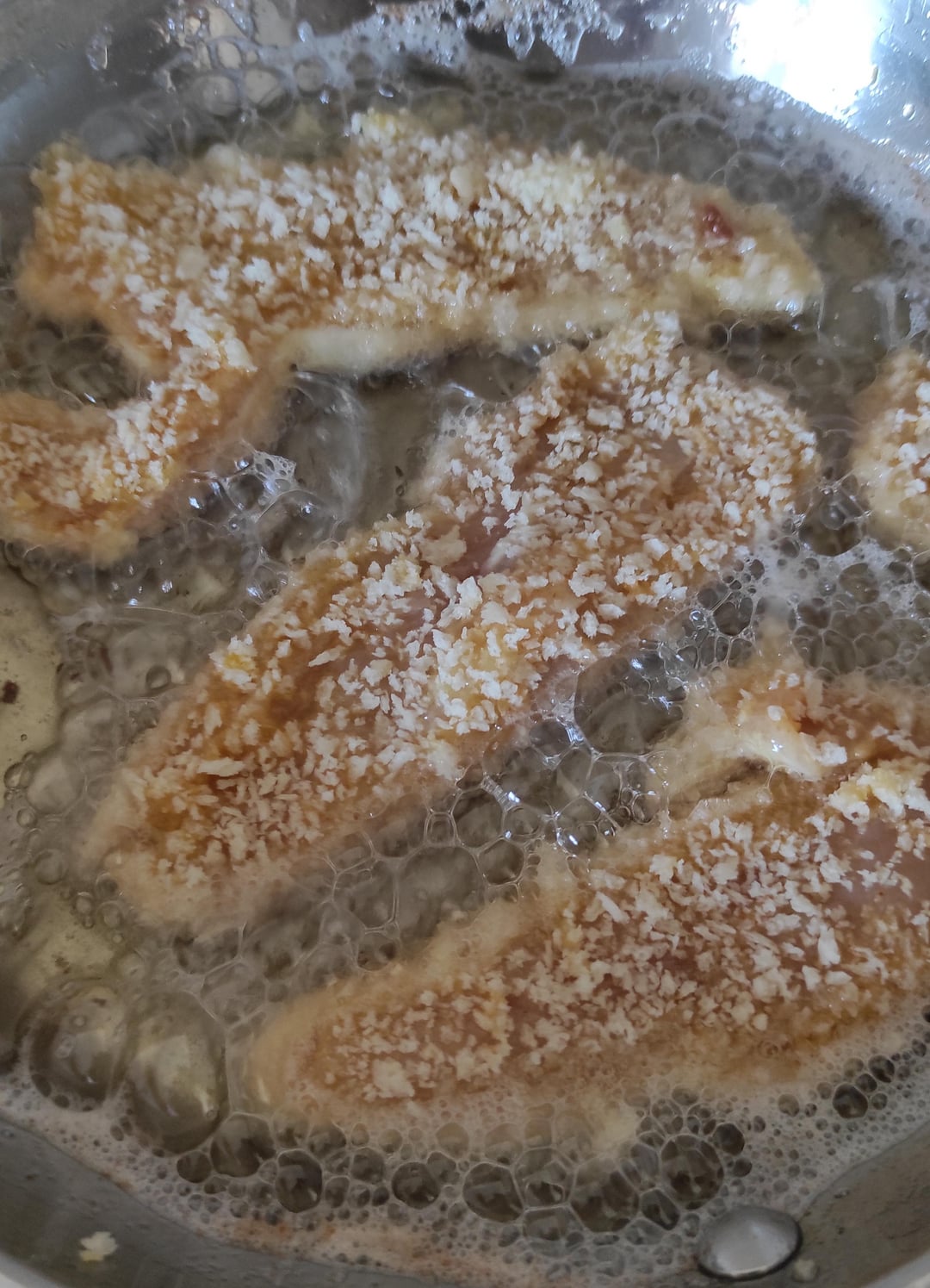 Faire paner la viande (farine=>oeuf=>panko) et frire.
