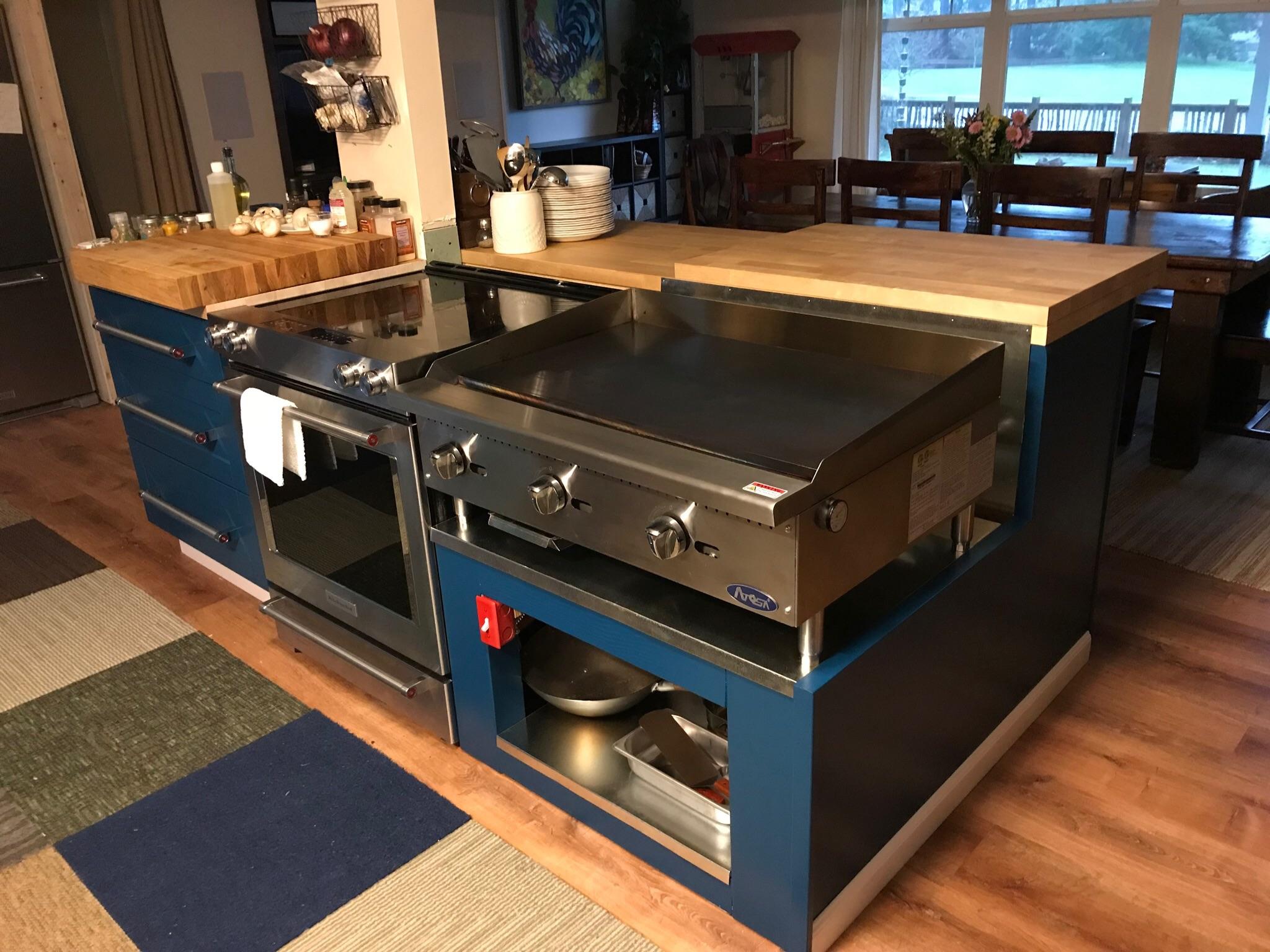 Island done. Waiting to install hood then two more sections to go. Maybe a video walkthrough in the future.by Kellywalshe kitchenKitchen Porn 6 Comments monty703 7 years ago That’s a lot of hot surface kind out in the open. Why’d you opt to install this all in an island? Scethrow 7 years ago Dude that is beautiful ! riskybiscuit 7 years ago love the flat grill. you will be able to make awesome stuff with that! Steingjerdet 7 years ago Pretty! Nice wooden boards! blakdart 7 years ago What’s that red housed switch? sweaty_missile 7 years ago What brand and model is that griddle?Write A CommentYou must be logged in to post a comment.