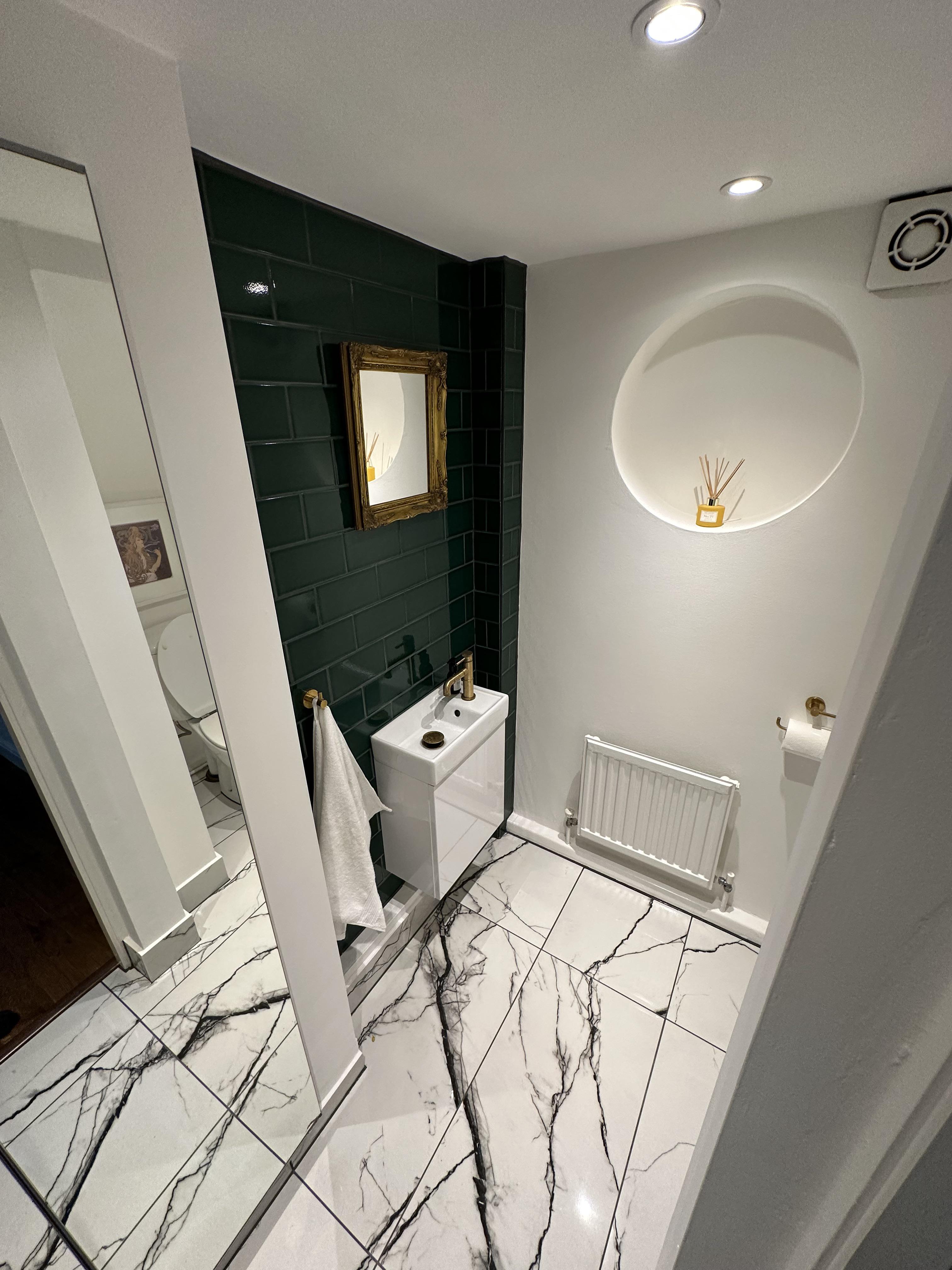 I’m super confused by the angle! Overall, looks good, but is it very small? Seems like it might be a bit over the top for the space. Cloakroom means something very different to me.