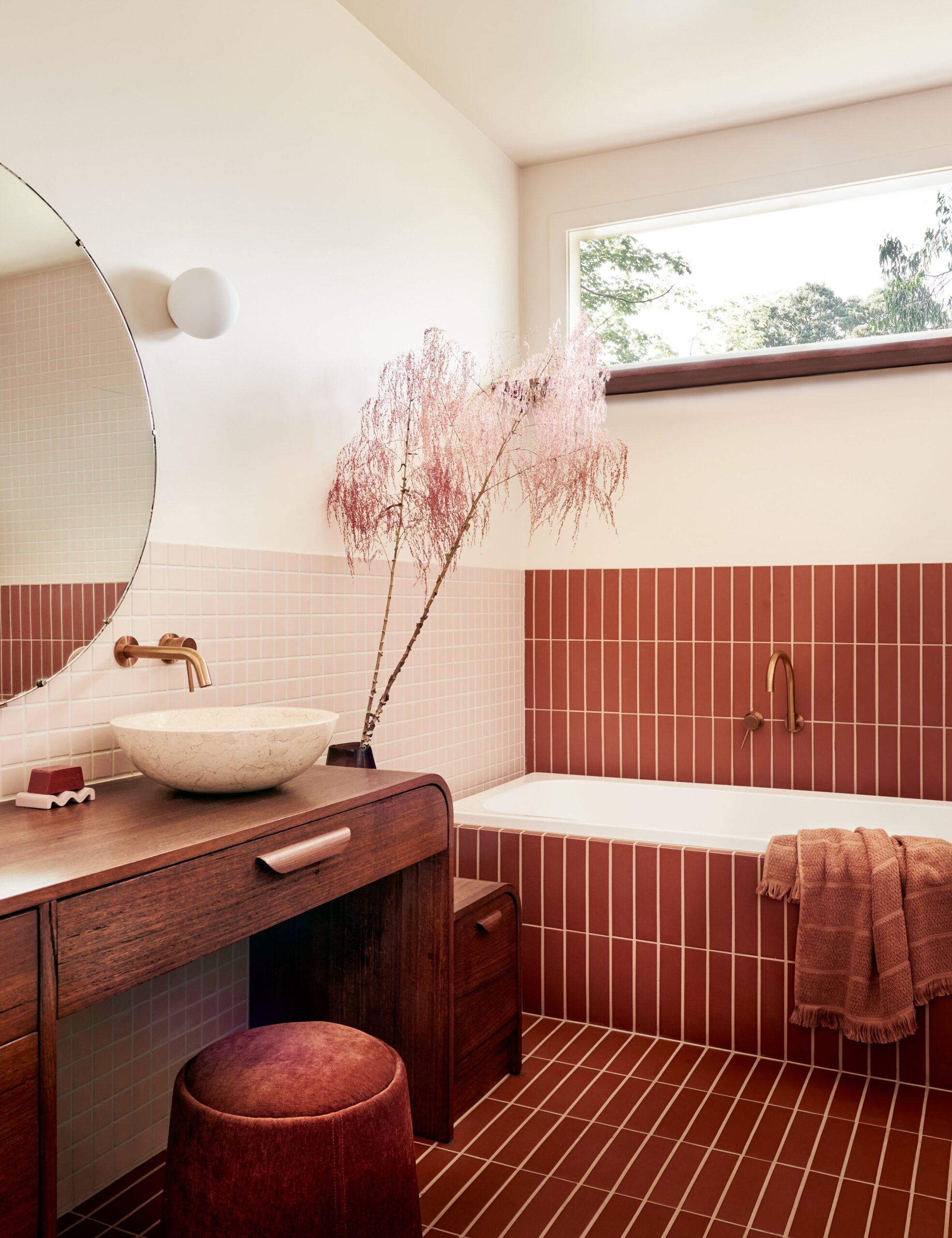 Tiled renovation of a former early 2000s monochrome bathroom, Preston, Melbourne, Australia [4000×5200]