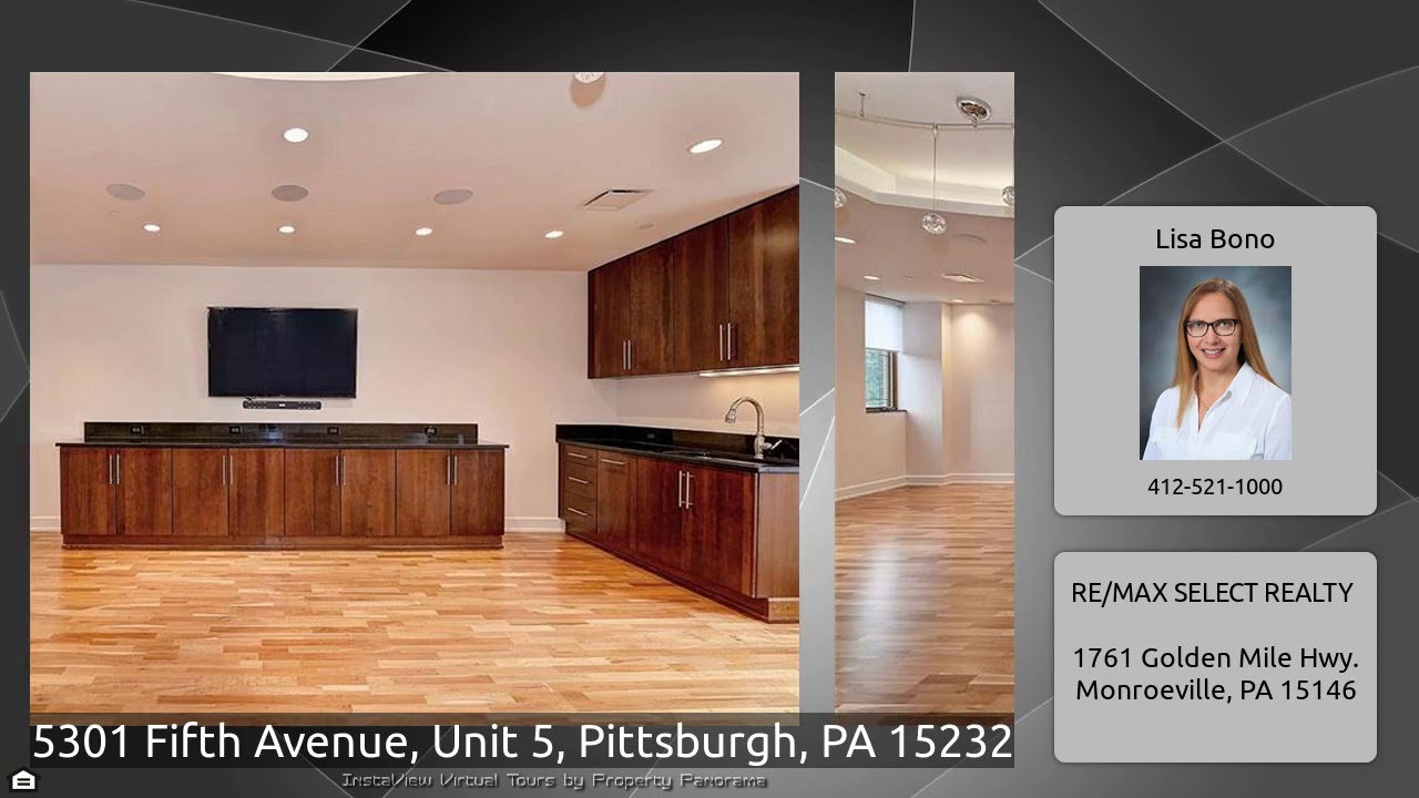 The Virtual Tour for the property at 5301 Fifth Avenue, Unit 5, Pittsburgh, PA 15232 listed for $1,625,000: Other homes for sale by Lisa Bono of RE/MAX SELECT REALTY: Shadyside Luxury Multi-level Condo in Great Location! Spacious Contemporary Living Highlights This Unique Unit. Open floor Plan w/ French Doors Leading to Balcony. Designer Kitchen w/ Thermador Appliances, 6-Burner Range, Wine Preservation, Coffee/Expresso Unit, Cherry Cabinetry, Granite Counters w/ Large Island Great For Parties! First Floor Master/In-law Suite w/ Sitting Area, Private Bath, Walk-In Closets, Kitchenette w/ Sink, …