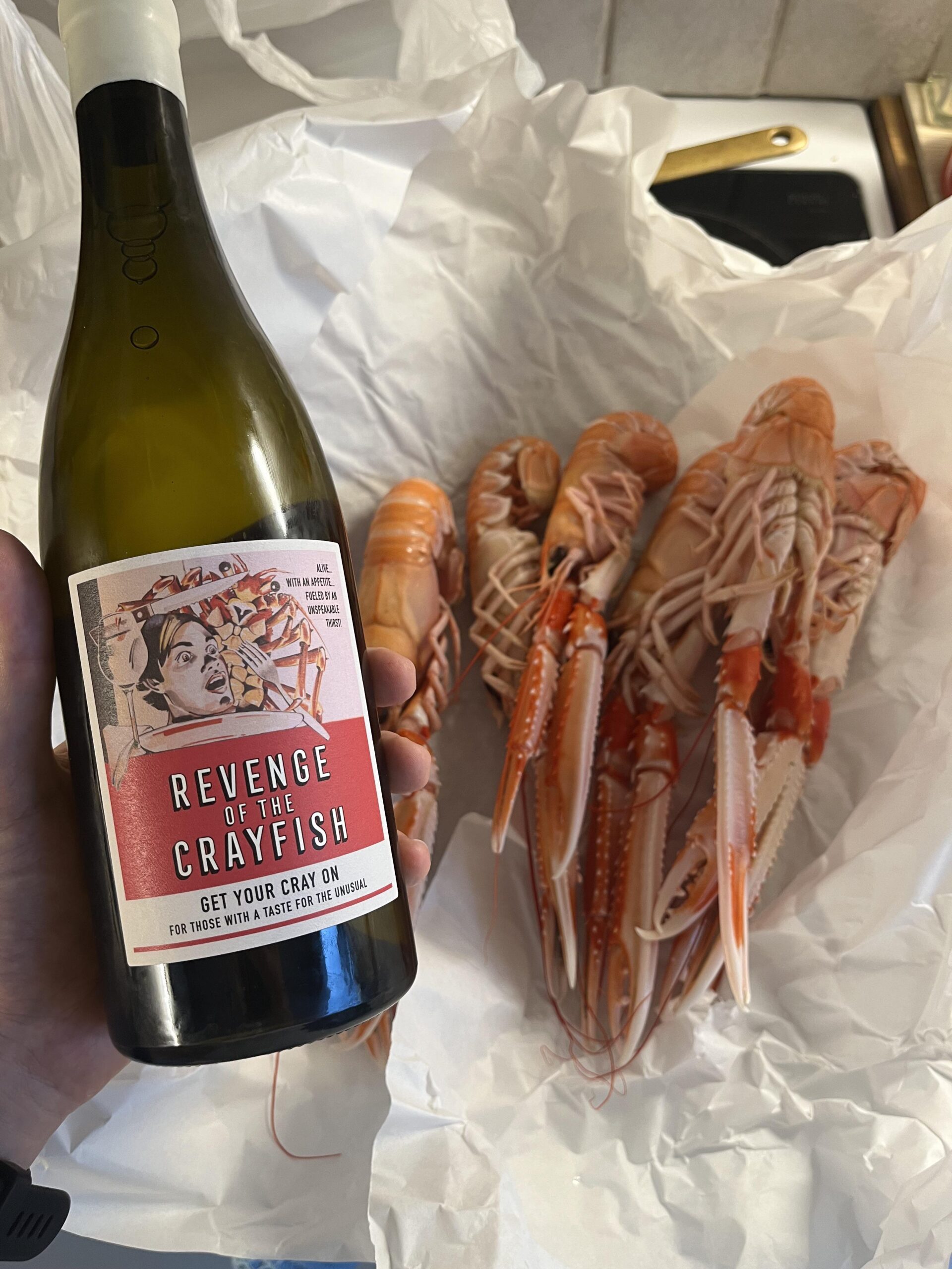 I let it breath for an hour before enjoying it together with *drum roll* grilled crayfish.