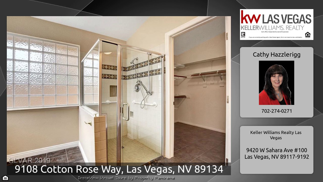 The Virtual Tour for the property at 9108 Cotton Rose Way, Las Vegas, NV 89134 listed for $345,000: Other homes for sale by Cathy Hazzlerigg of Keller Williams Realty Las Vegas: *WELCOME HOME*Single story 3 bed/2 bath home nestled in Summerlin Hills. Handicap and wheelchair accessible, roll in shower & under sinks (doors on order for kitchen), Featuring kitchen island, recycled glass counters. Formal living/dining combo. Family room w/ fireplace. French doors from family room & master to backyard covered patio. Community parks. Summerlin community pools available for use at a small fee, for …