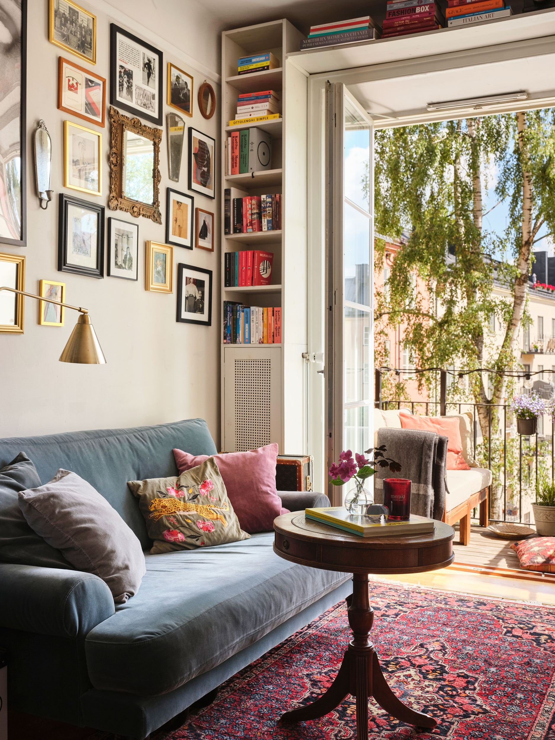 I want it! Small, but with tall ceilings, patio doors that fold open to th outdoors and a tree for greenery. So nice and cozy.