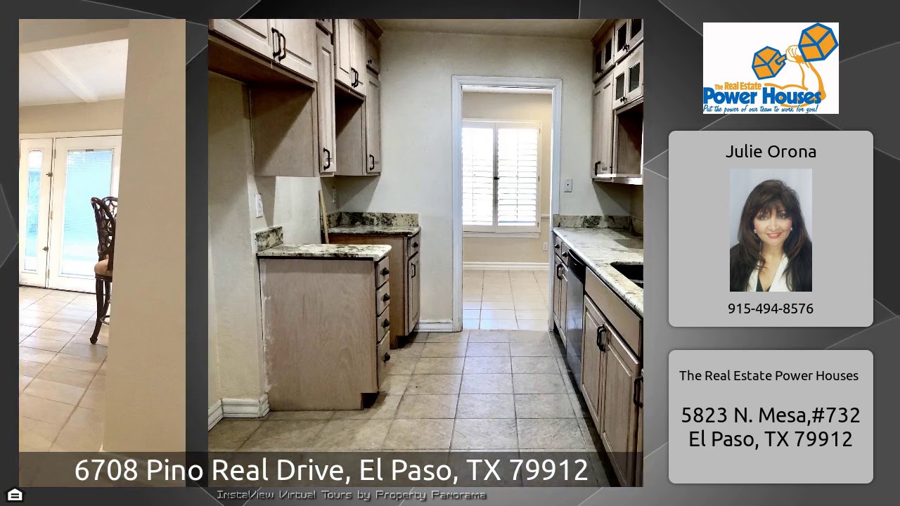The Virtual Tour for the property at 6708 Pino Real Drive, El Paso, TX 79912 listed for $174,900: Other homes for sale by Julie Orona of The Real Estate Power Houses: Lovely Remodeled Spacious Four Bedroom Home on a Elevated & Shaded Verdant Lot. Ample bedrooms with wood floors. Ceramic tile throughout busy areas . Full Bath all tiled back splash &, Master Bath has Large Double sized Shower Stall Big Tiles throughout with Double vanities.,Open large living room & Separate Dining area w/Plantation Shutters, High Beamed Ceiling with Stone Tiled Fireplace & French doors to the tiled covered …
