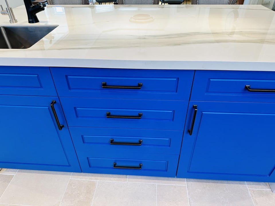 Love the blue cabinets
