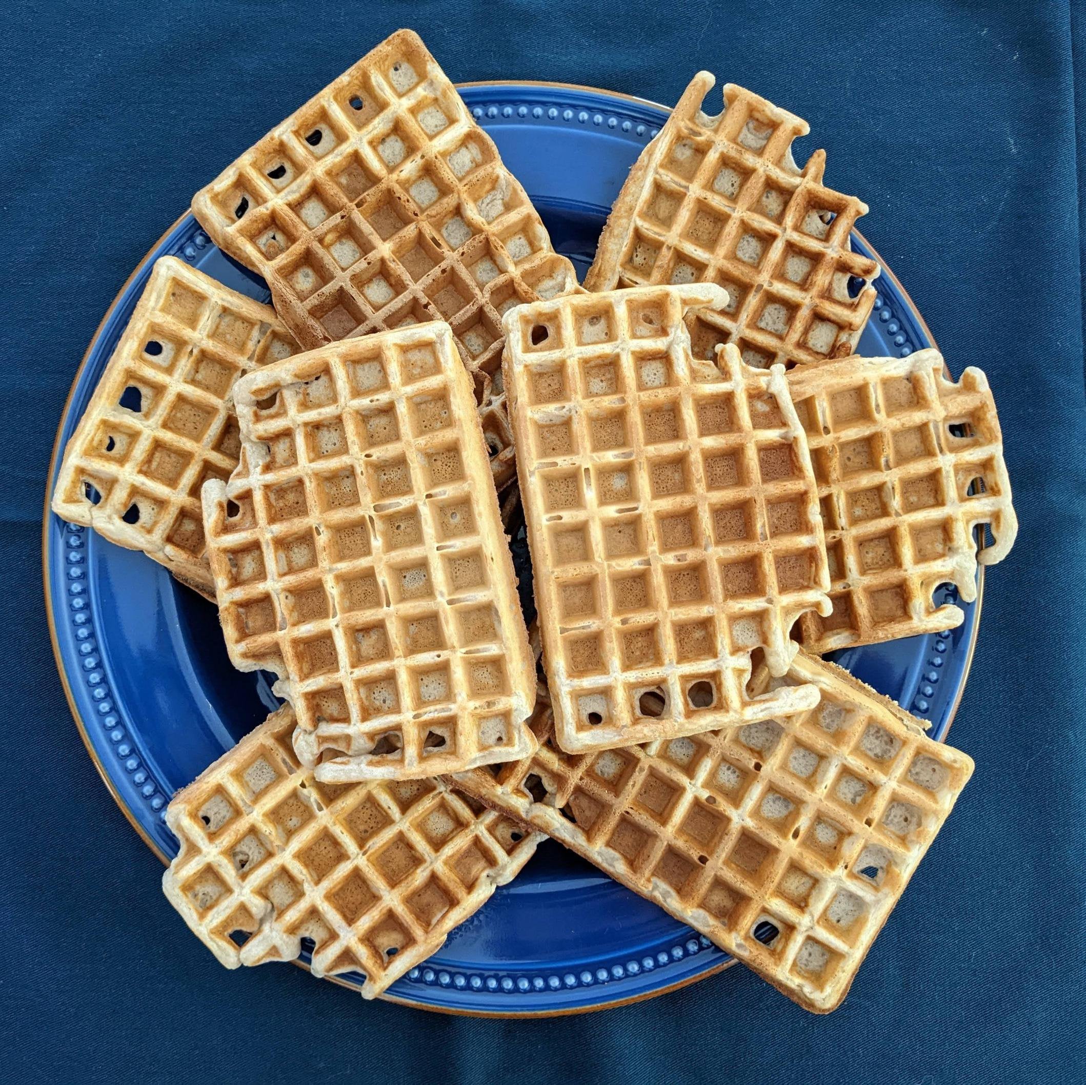 La recette : 2 bananes écrasées, 200g de farine, ~200ml de lait d’avoine (grosso modo pour avoir une pâte liquide mais pas trop), un sachet de sucre vanillé, un sachet de levure chimique. On laisse reposer une heure et hop dans le gaufrier. Avec sirop d’érable, pâte de noisette ou simplement sucre glace c’est délicieux !