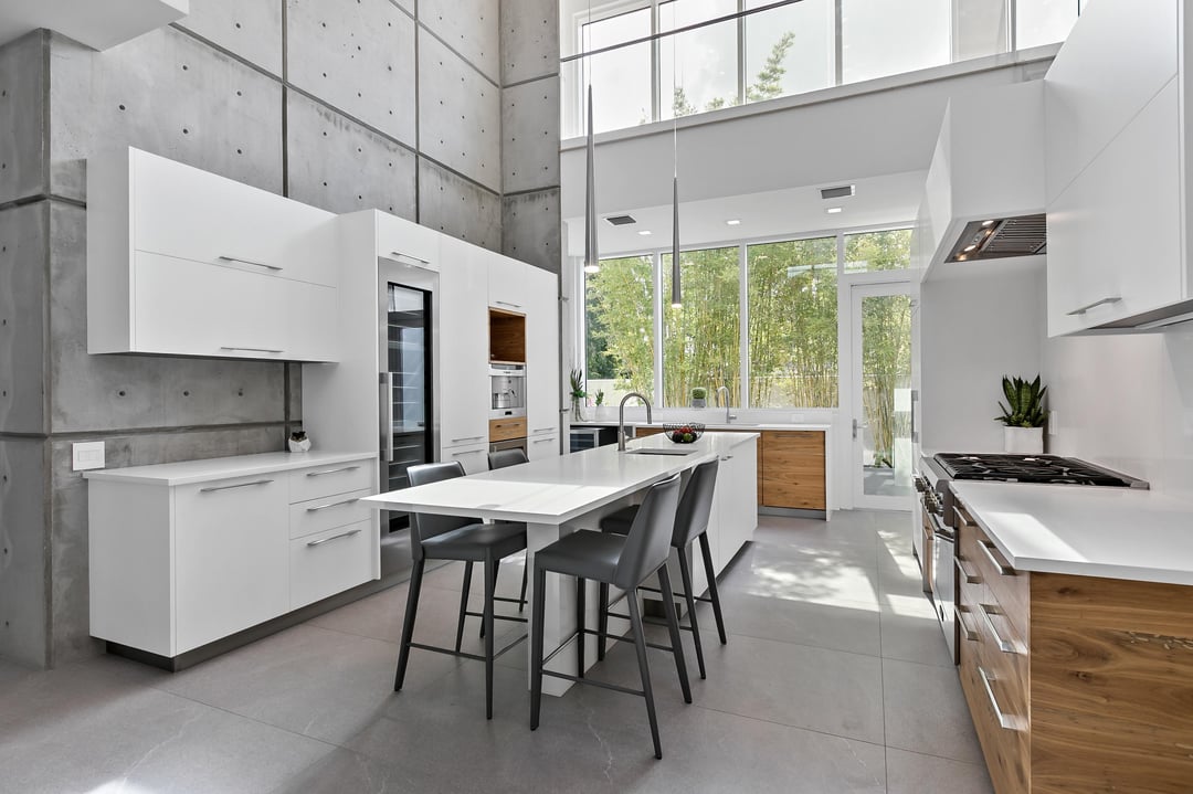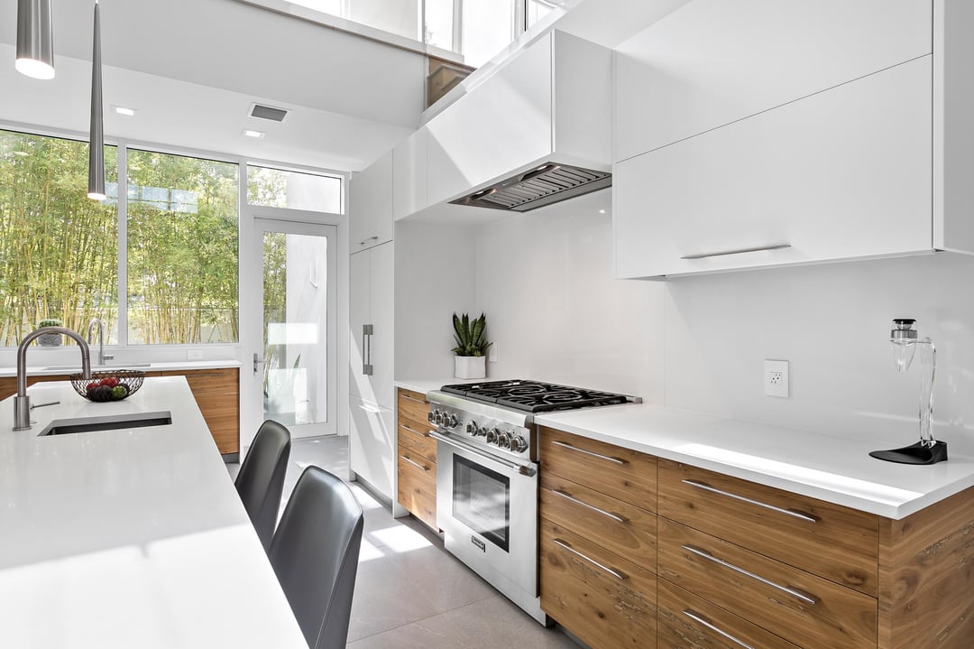 Total modernist if they’d ditch the wood base cabinet on the right and a set of Cafe or Bespoke appliances. Not feeling the porn part.